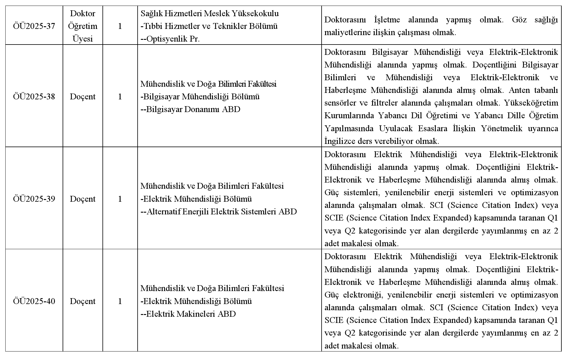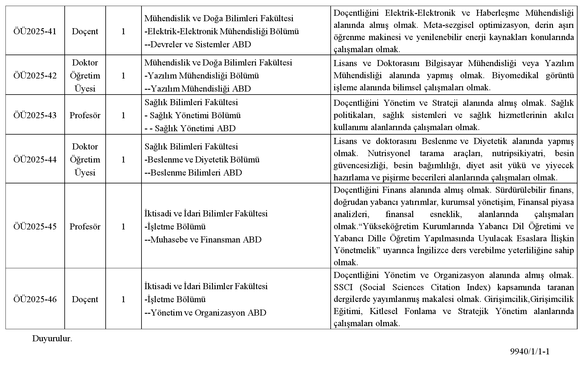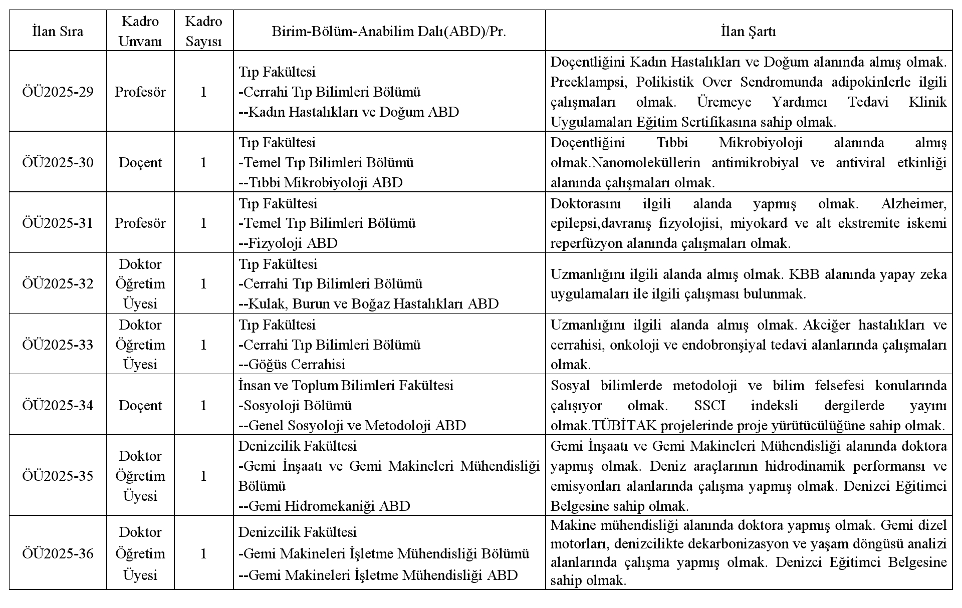 ÖĞRETİM ÜYESİ ALIM İLANI (2025-02)