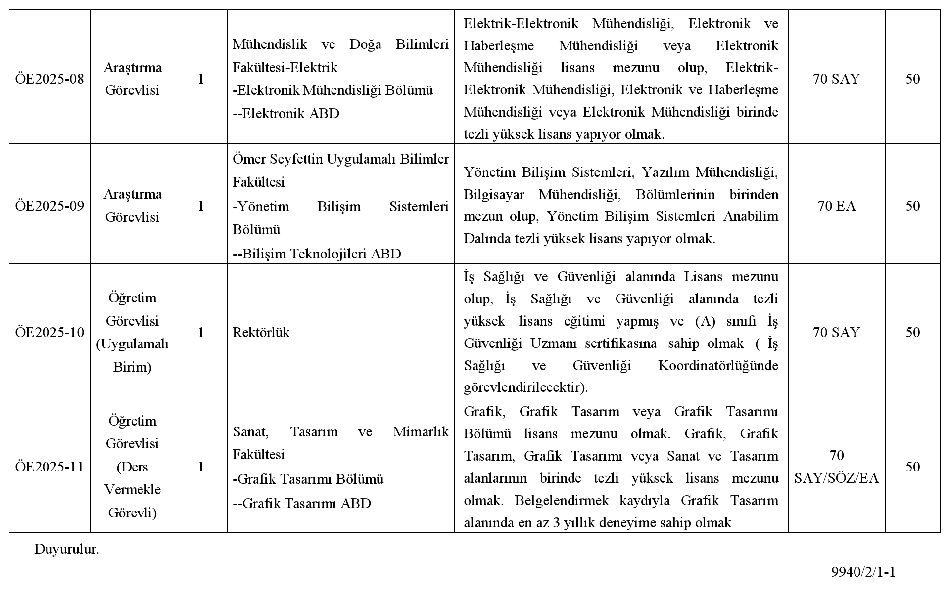 ÖĞRETİM ELEMANI ALIM İLANI (2025-02)