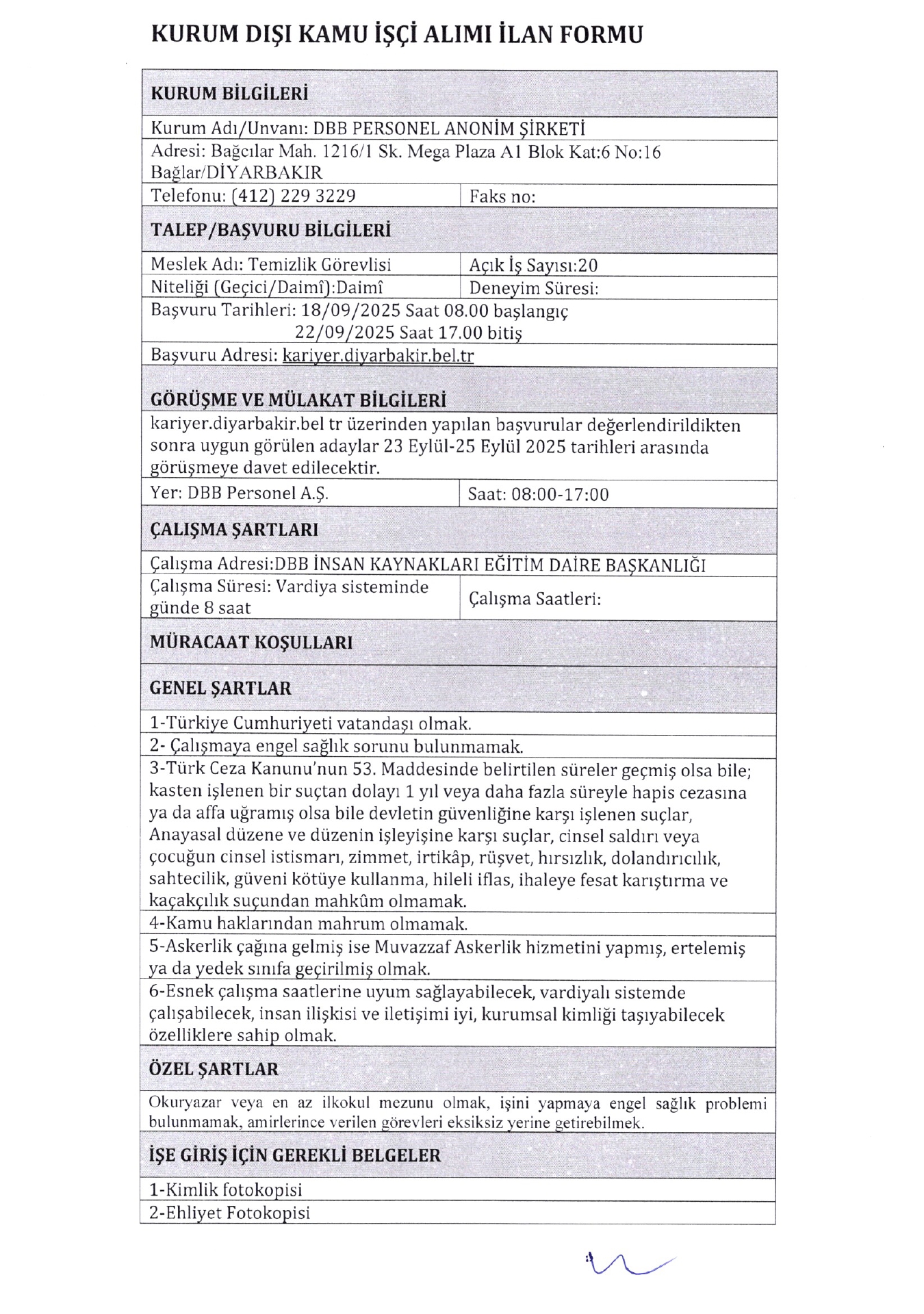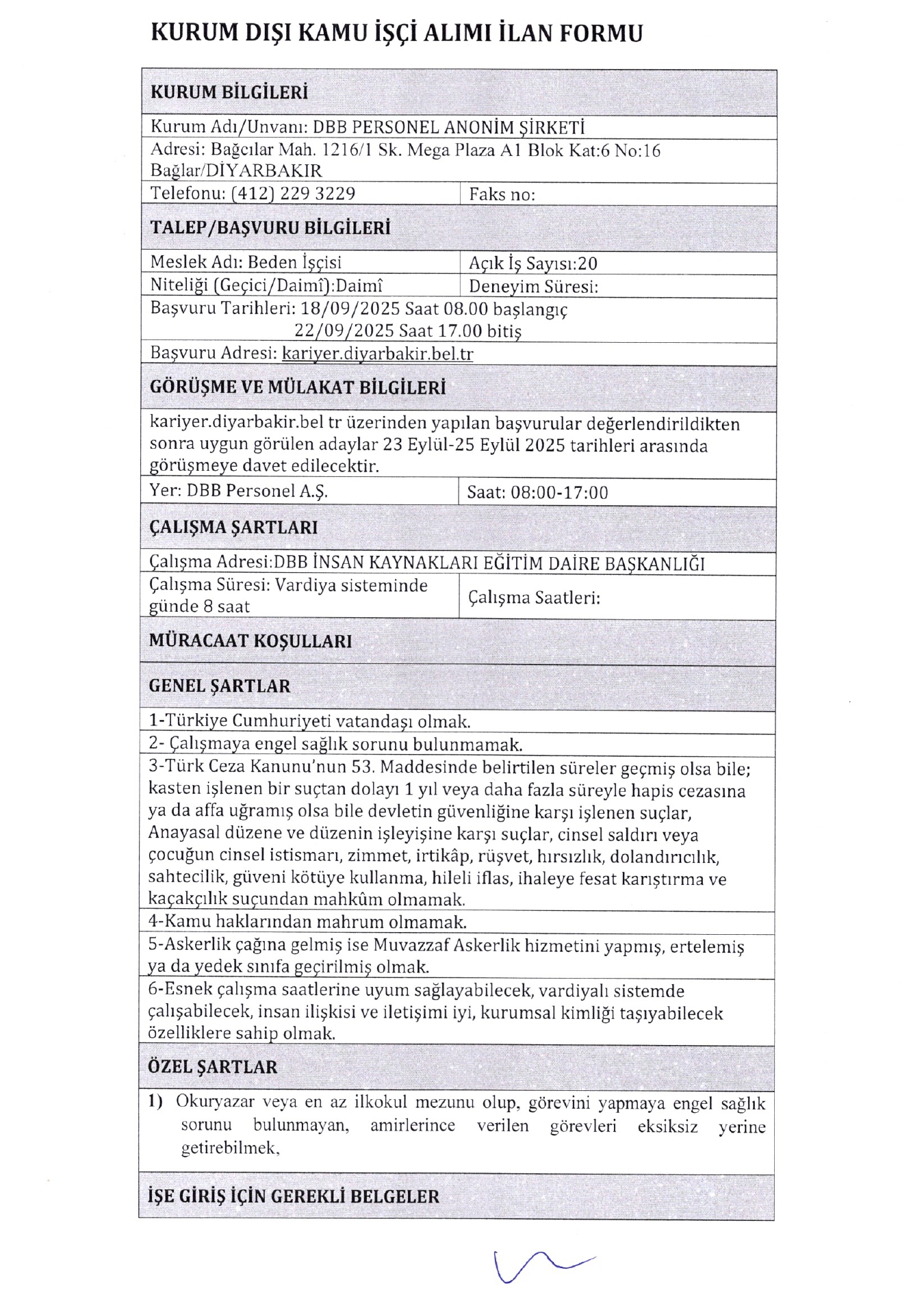 Diyarbakır Büyükşehir Belediyesi 40 İşçi Alacak. Son başvuru tarihi 22 Eylül 2025