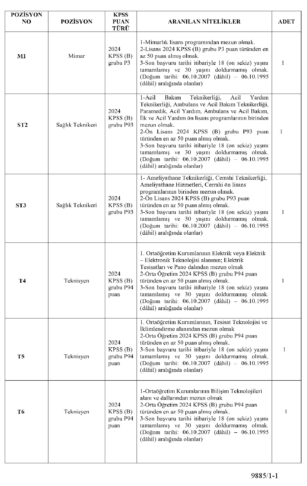 Başvurulabilecek pozisyonlar ve aranan nitelikler için lütfen tıklayınız.