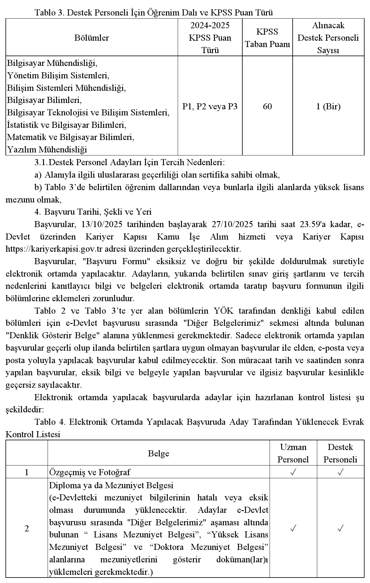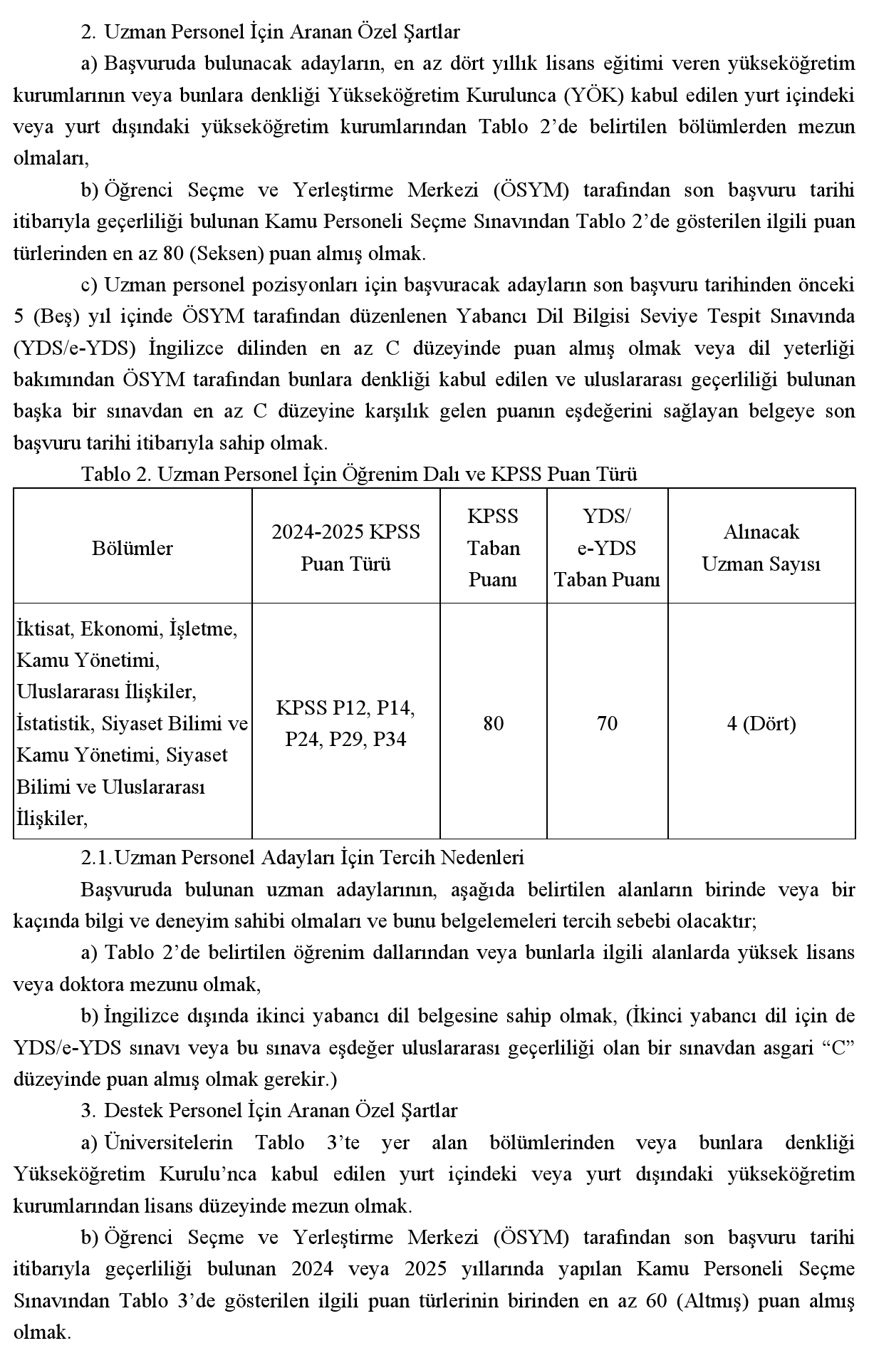 2. Uzman Personel İçin Aranan Özel Şartlar