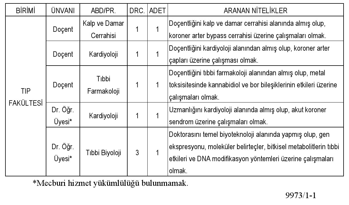 ÖĞRETİM ÜYESİ ALIM İLANI