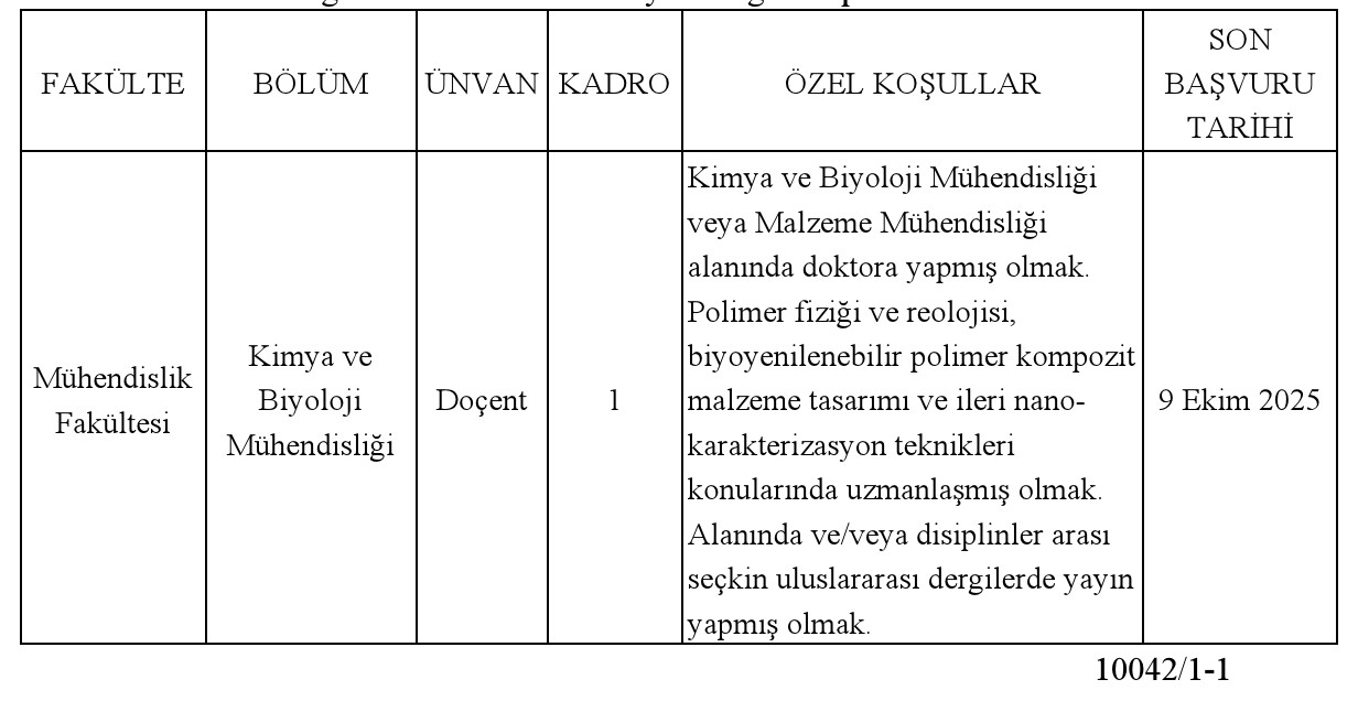 Koç Üniversitesi Öğretim Üyesi Alım İlanı. Son başvuru tarihi 7 Ekim 2025