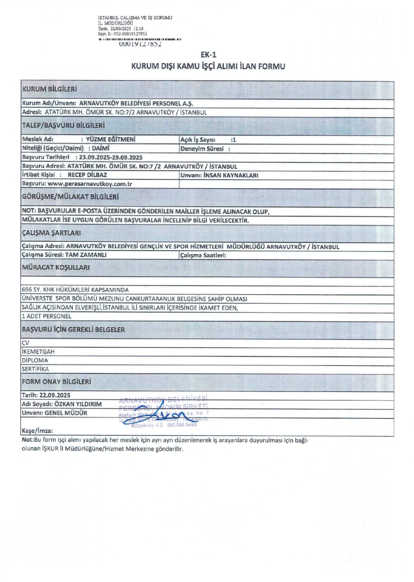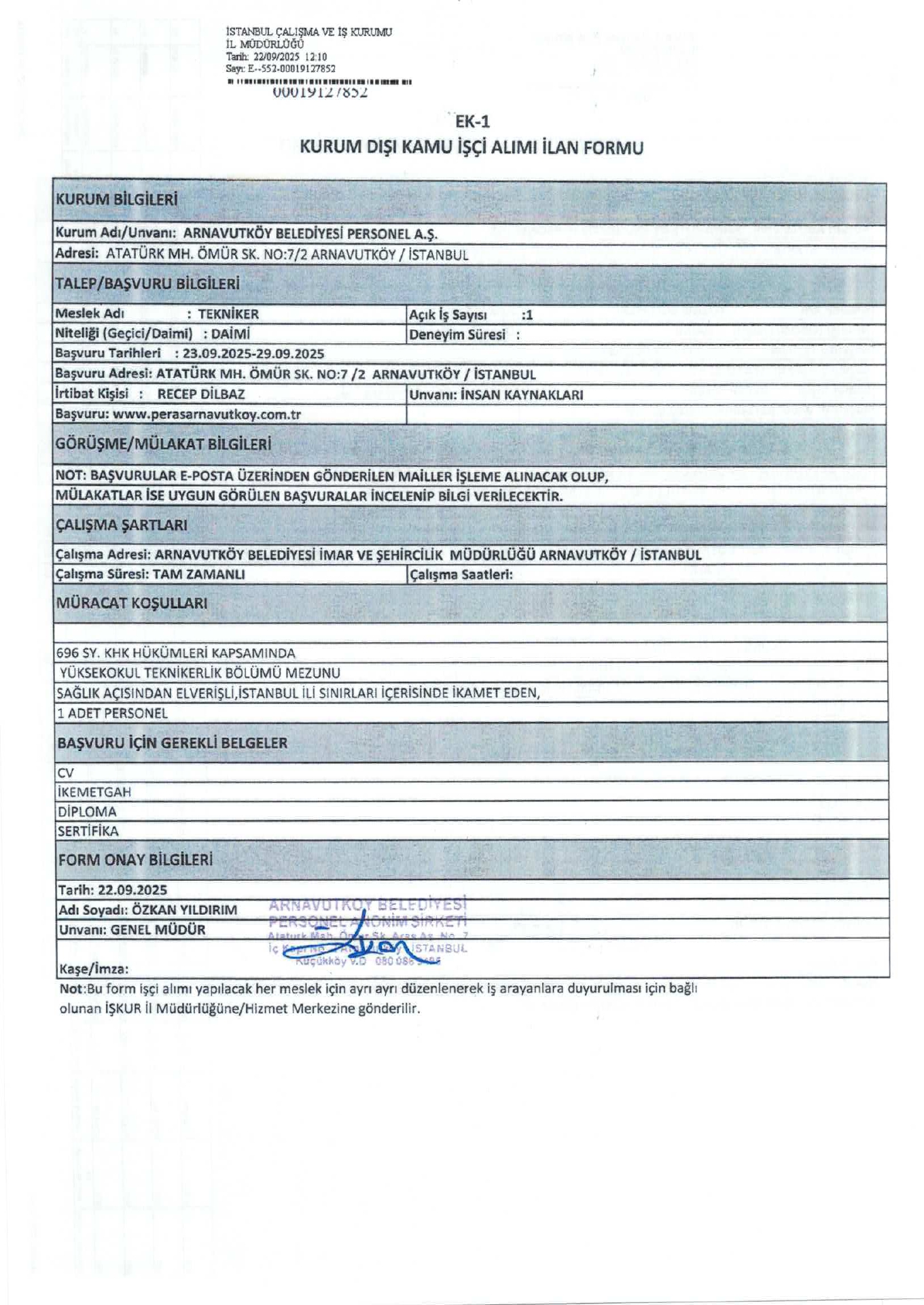 İstanbul Arnavutköy Belediyesi 2 İşçi Alacak. Son başvuru tarihi 29 eylül 2025