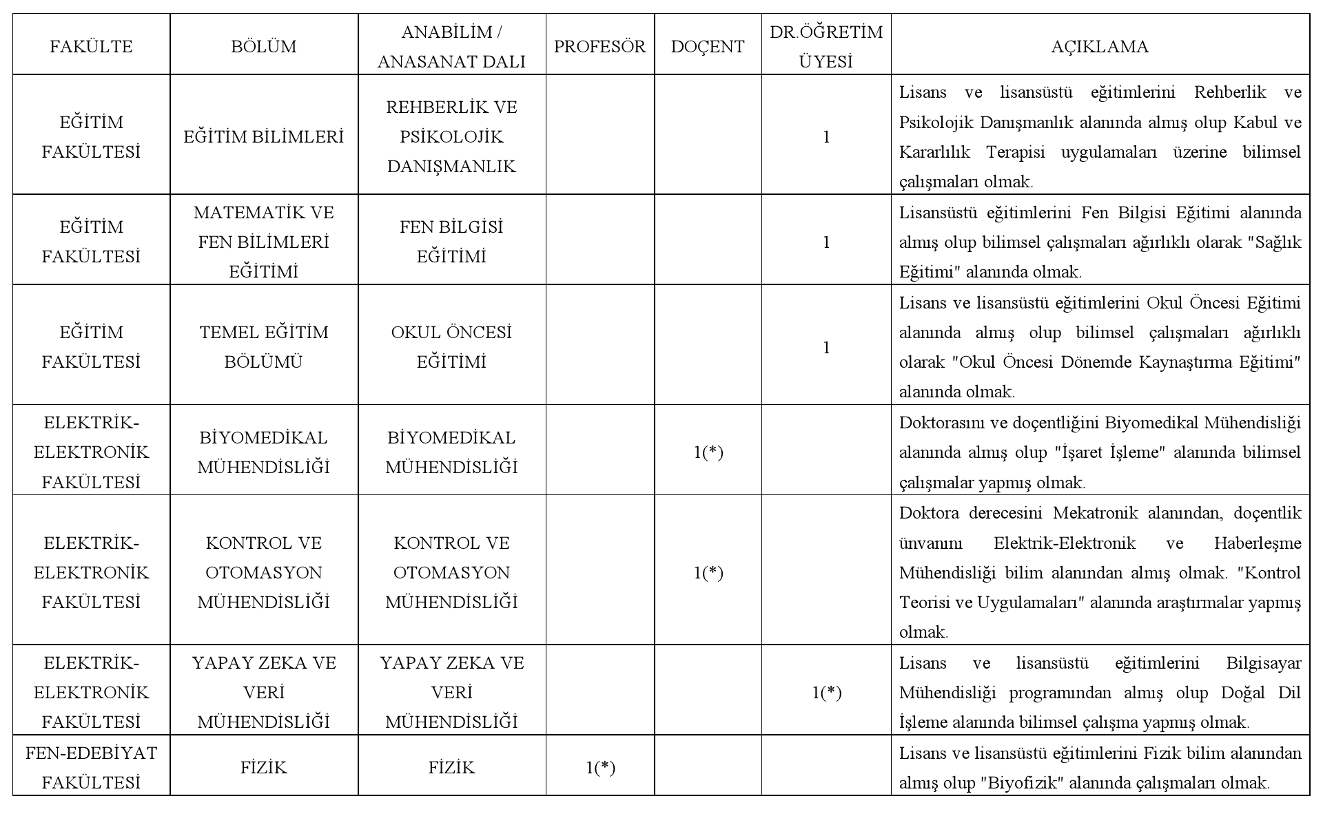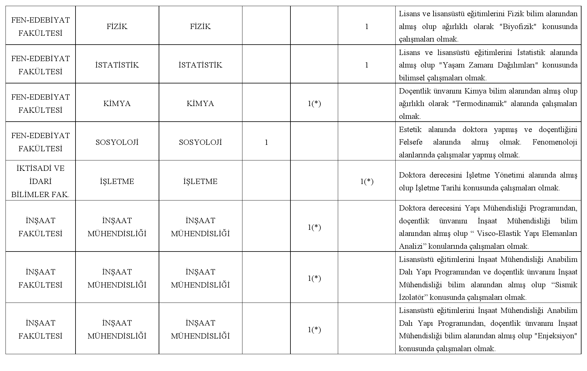 ÖĞRETİM ÜYESİ ALIM İLANI