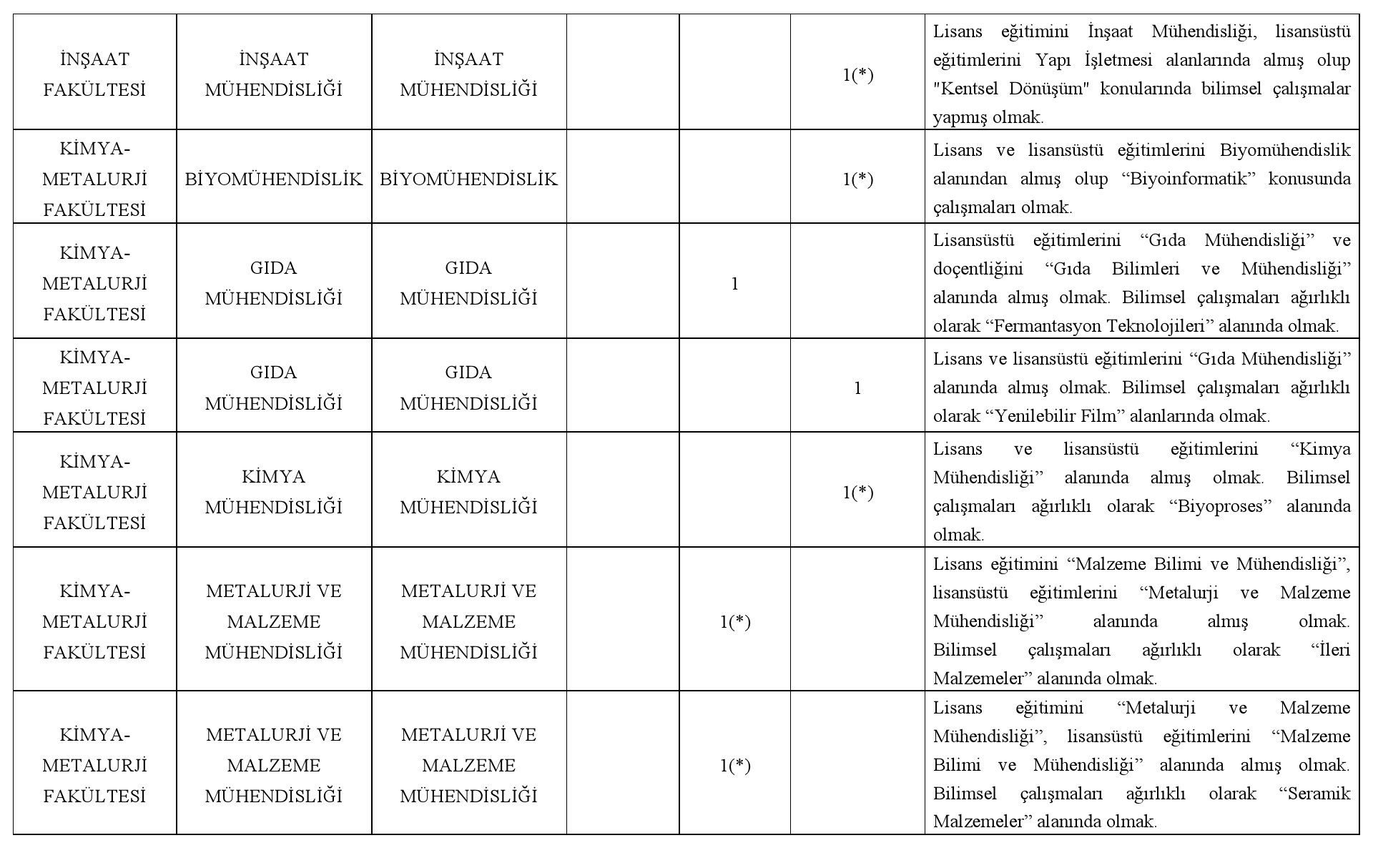 Yıldız Teknik Üniversitesi Öğretim Üyesi Alım İlanı