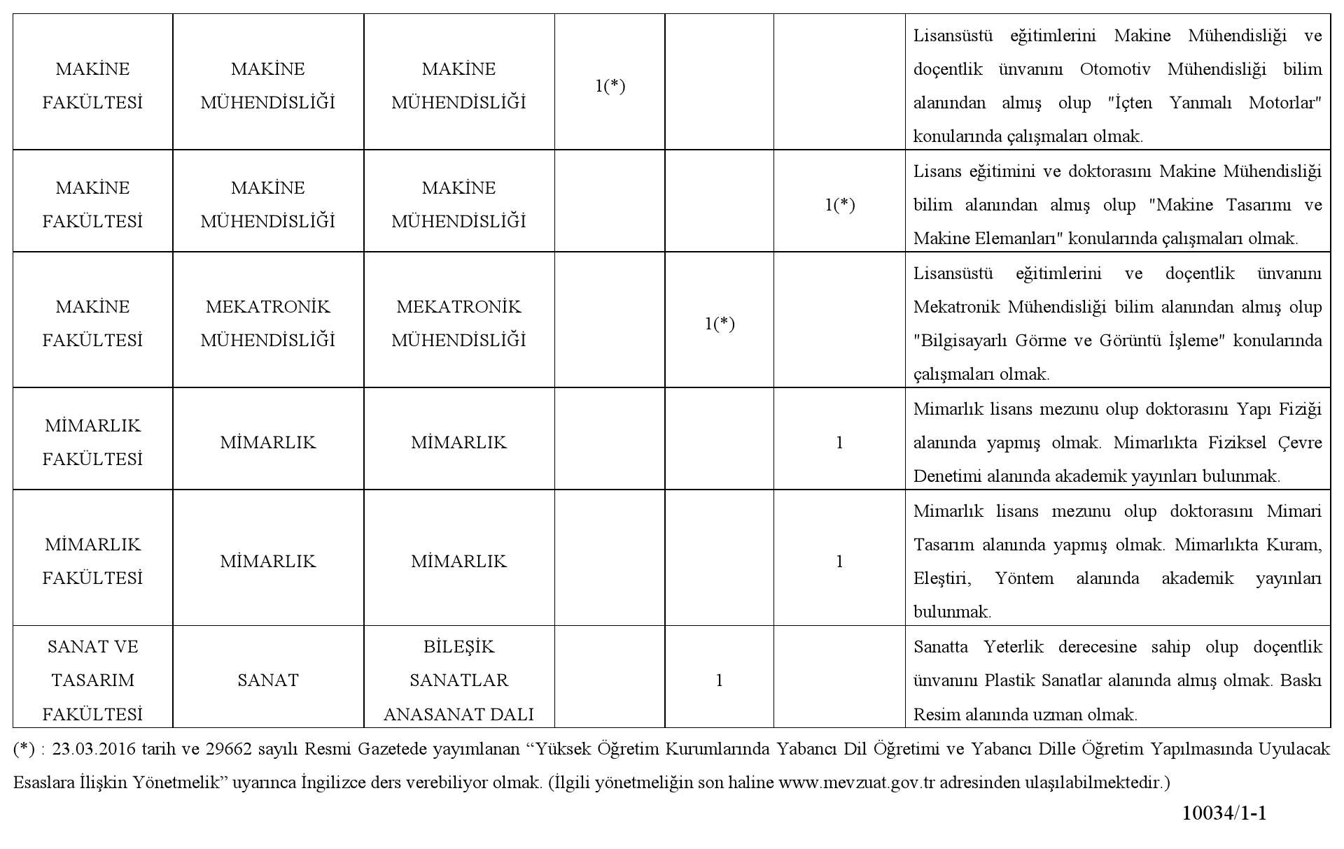 NOT 1: Yabancı ülkelerden alınan diploma/unvanların Yükseköğretim Kurulu veya Üniversitelerarası Kurulca denkliğinin onaylanmış olması gerekmektedir.