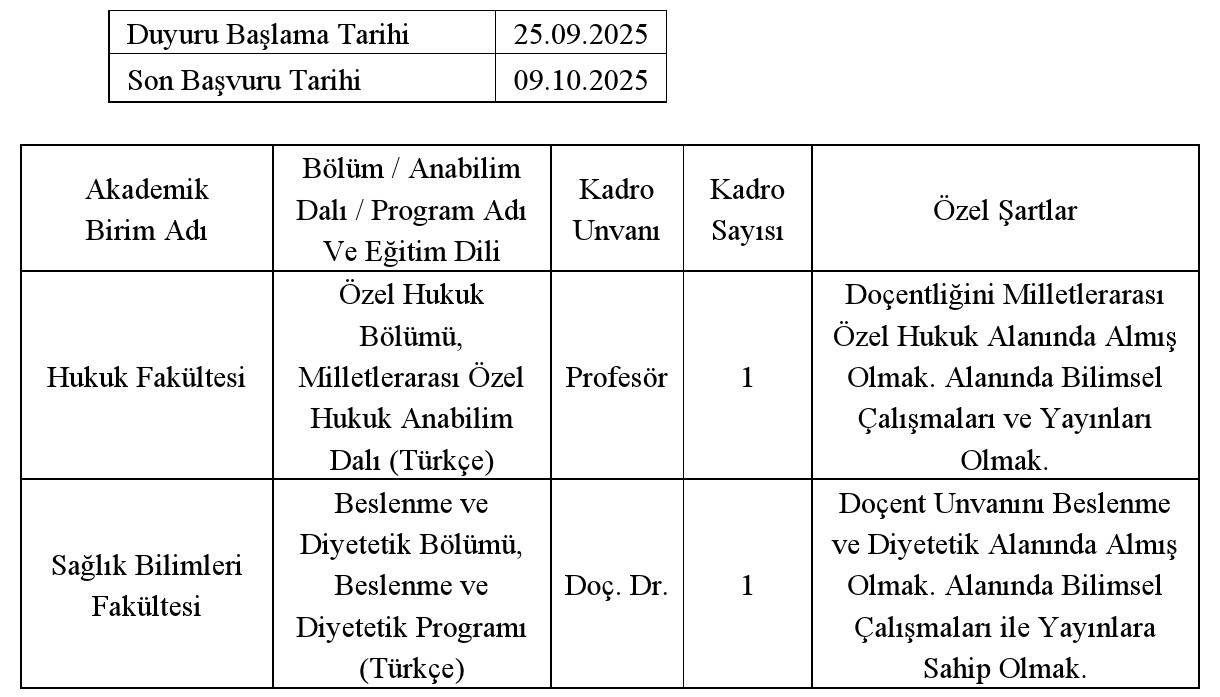 İlan Tarihi : 25.09.2025