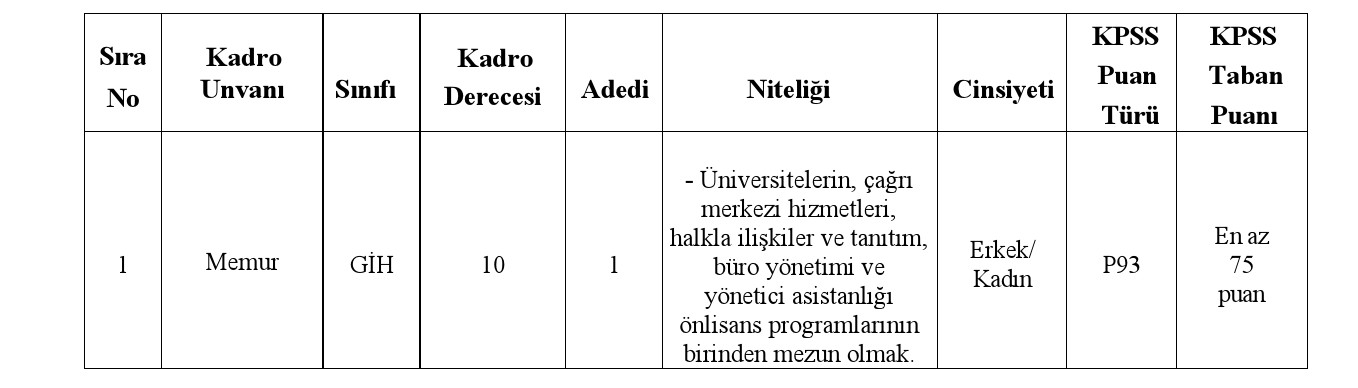 İLK DEFA ATANMAK ÜZERE MEMUR ALIM İLANI