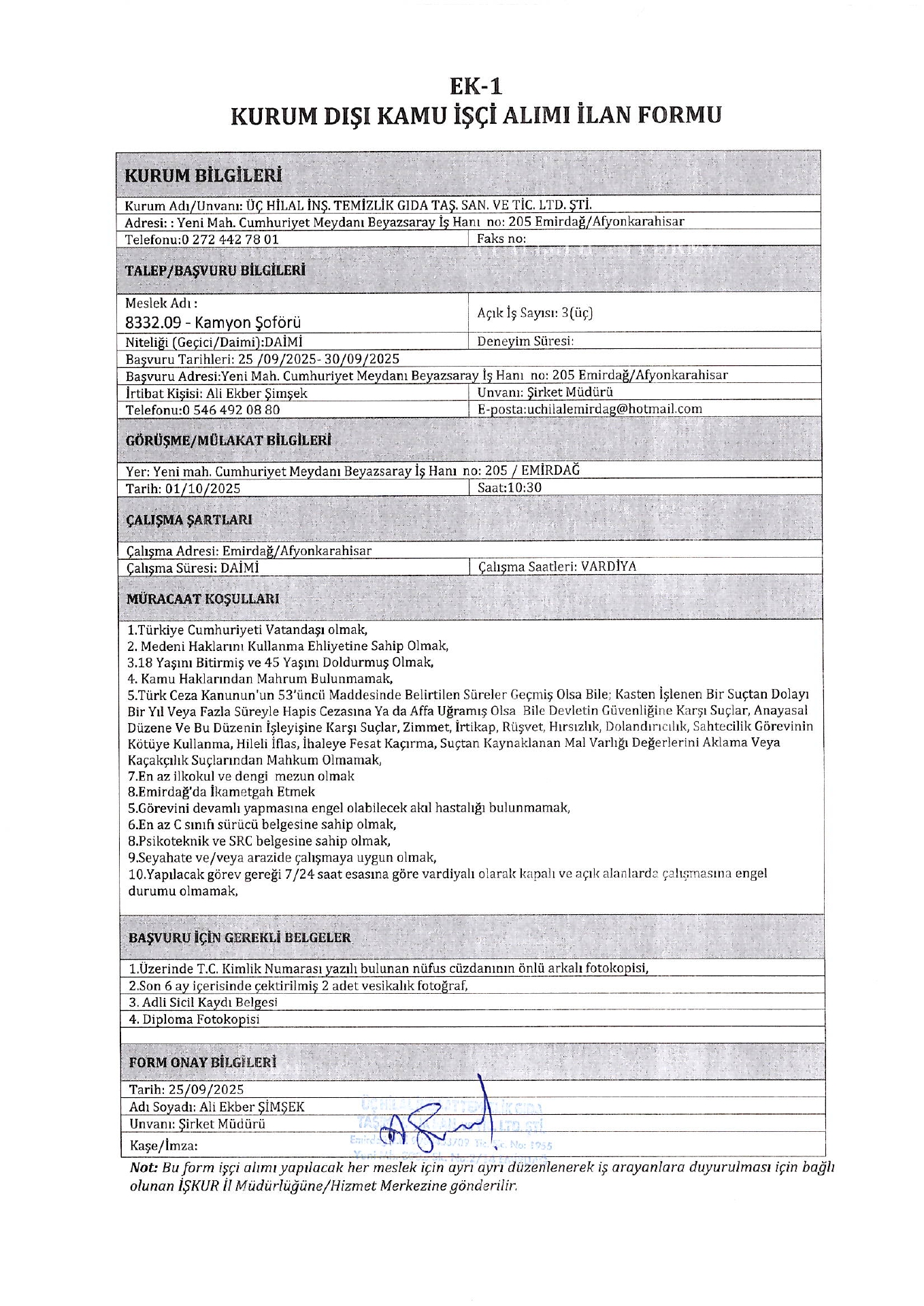 İlan Giriş : 26 Eylül 2025 00:13, Son Güncelleme : 26 Eylül 2025 03:39
