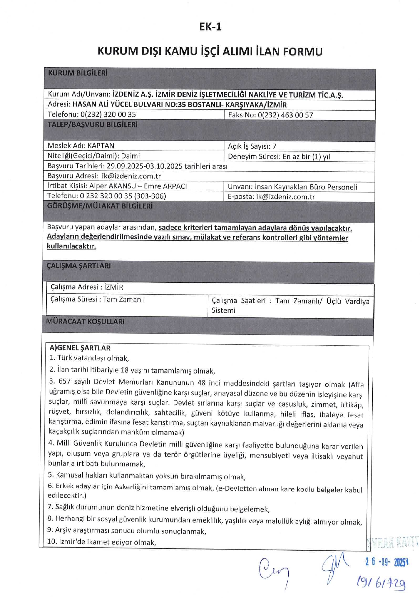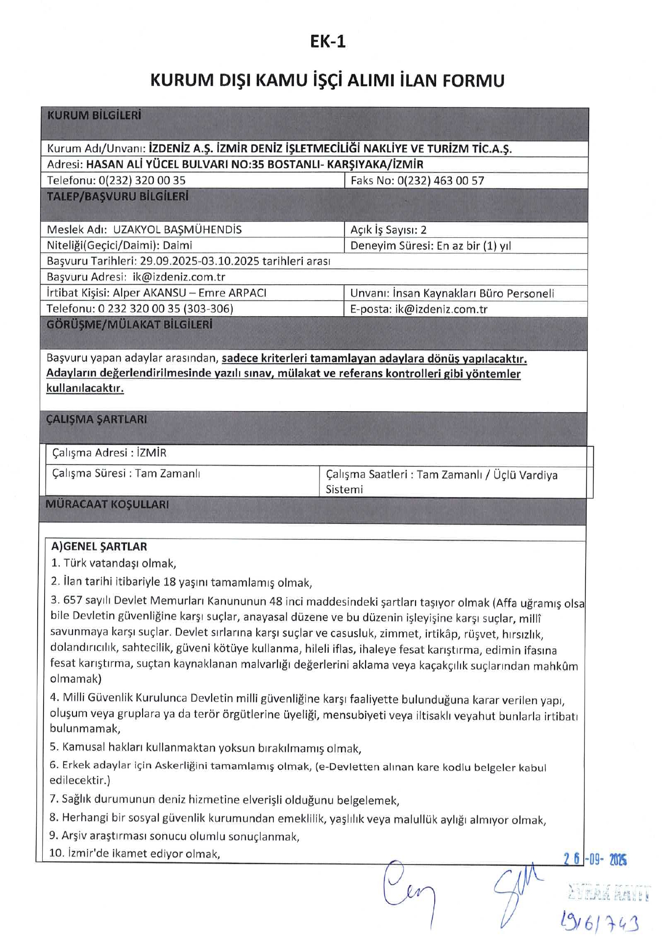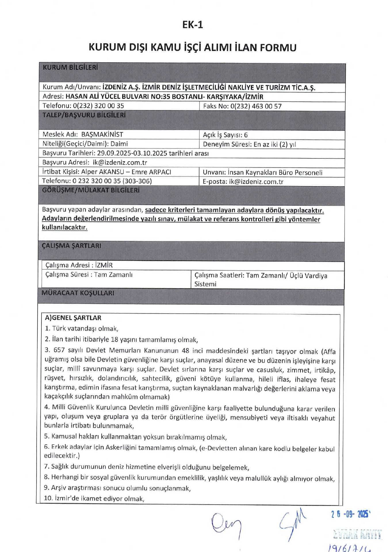 İlan Giriş : 27 Eylül 2025 09:38, Son Güncelleme : 27 Eylül 2025 10:08