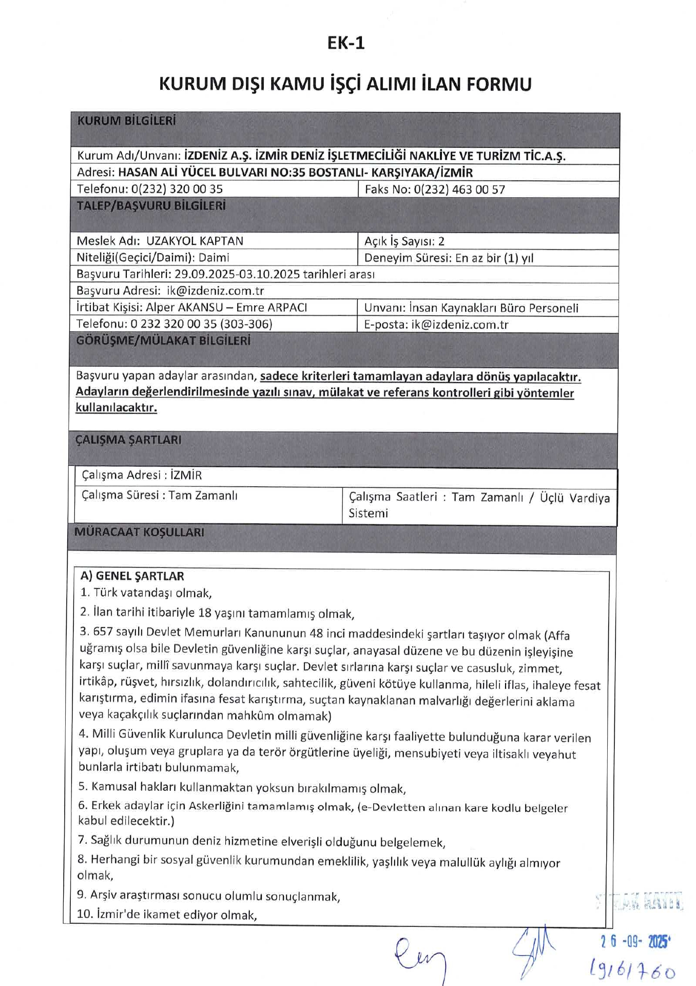 İzmir İzdeniz 28 İşçi Alacak. Son başvuru tarihi 3 Ekim 2025