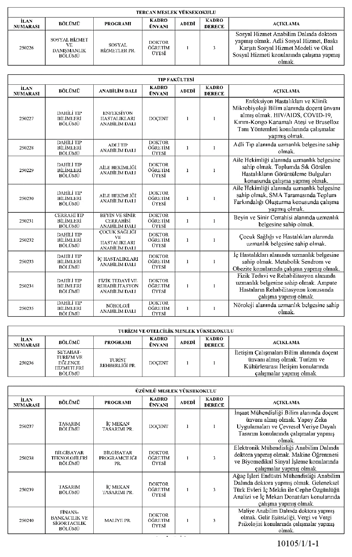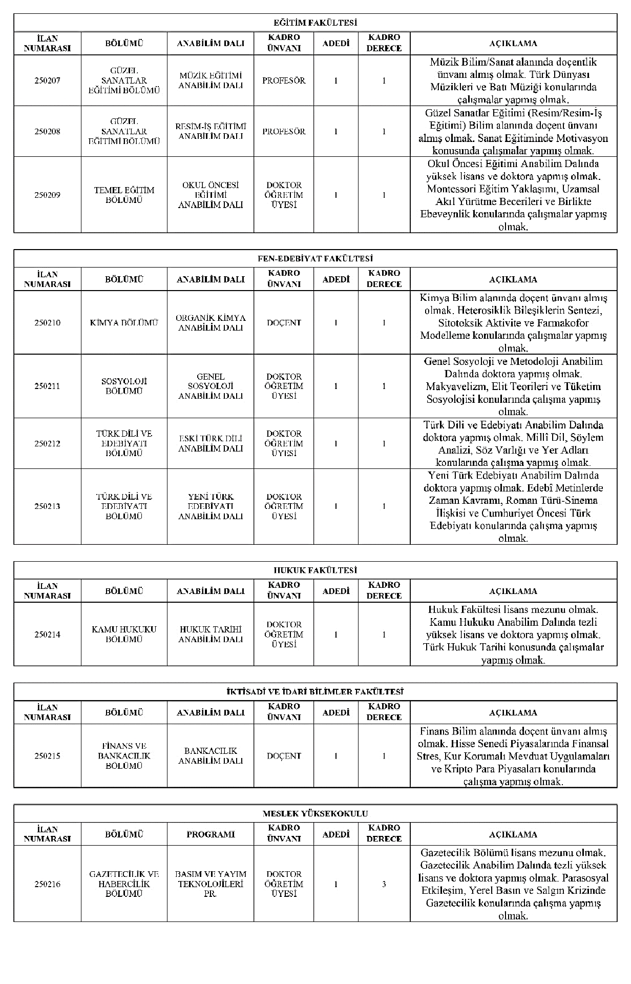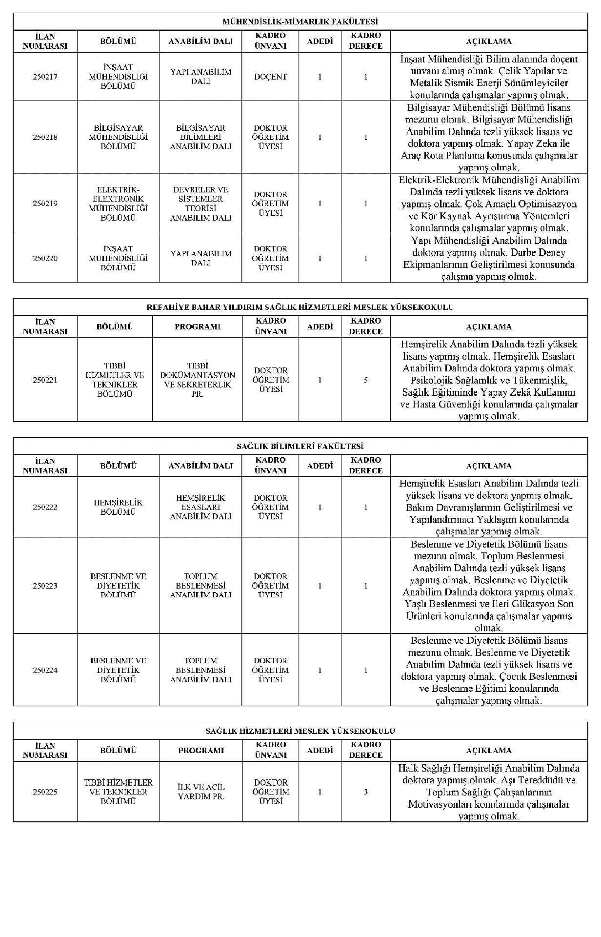 Profesör ve doçent kadroları için Personel Daire Başkanlığından, doktor öğretim üyesi kadrosu için ilgili birimlerden bilgi edinilebilir.