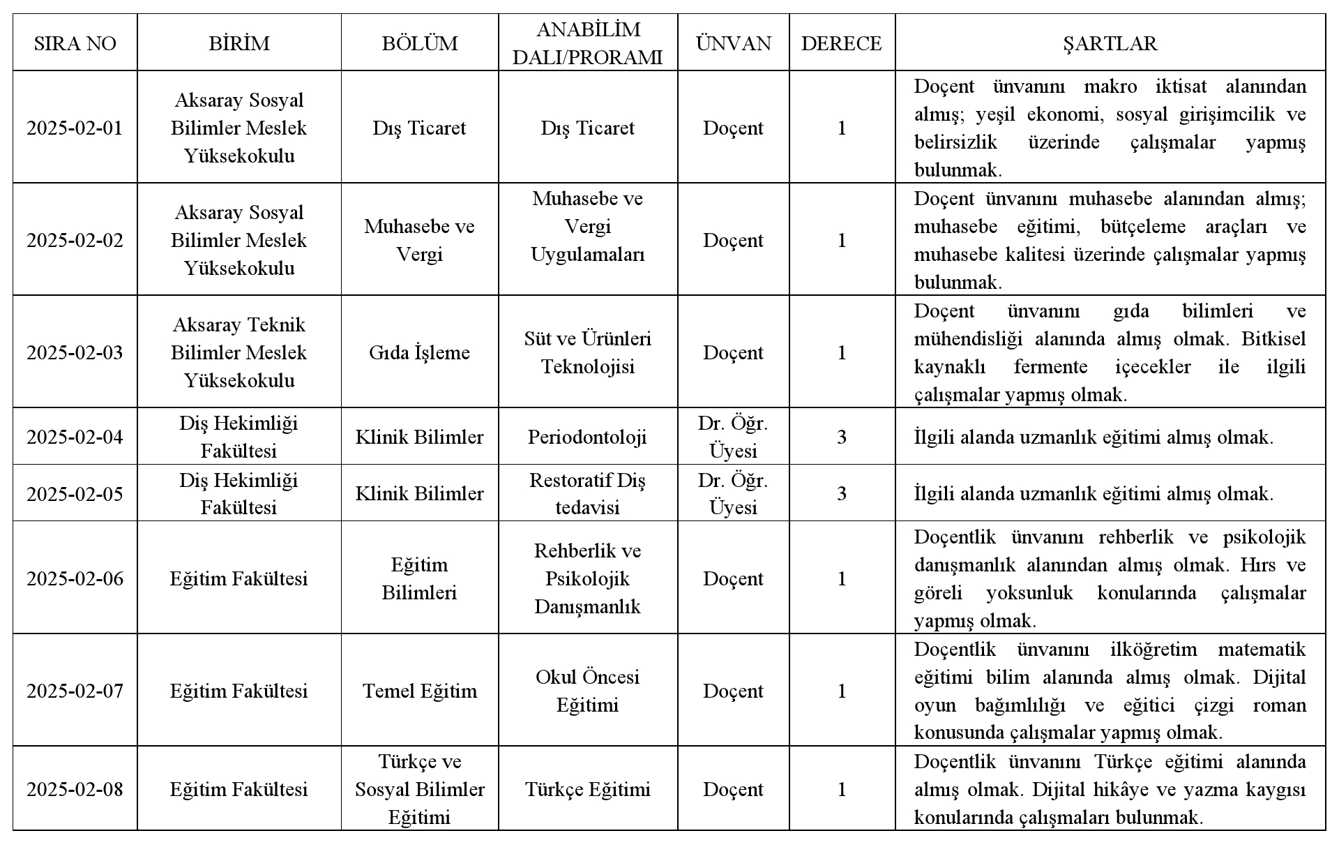 Aksaray Üniversitesi Öğretim Üyesi Alım İlanı. Son başvuru tarihi 13 Ekim 2025