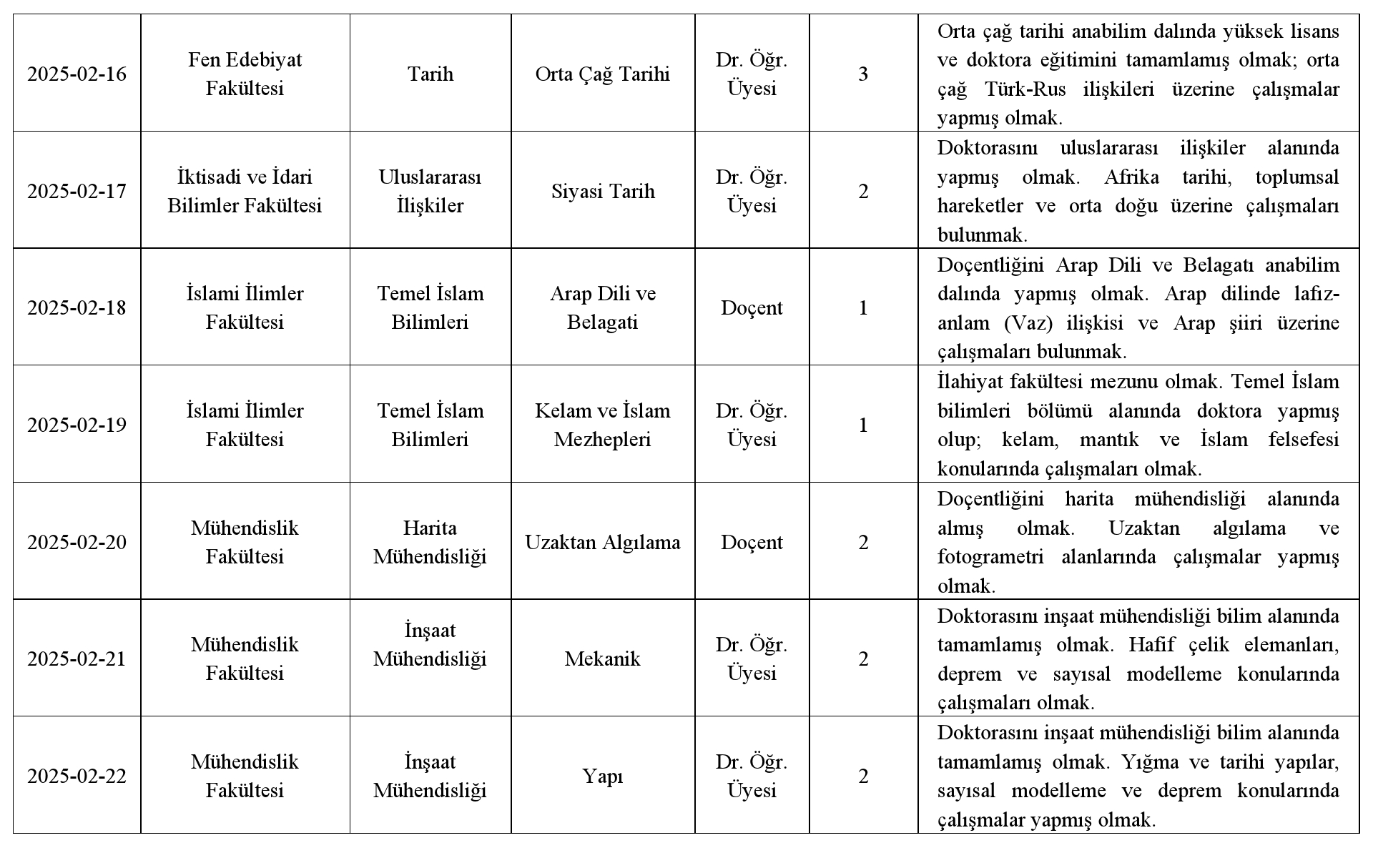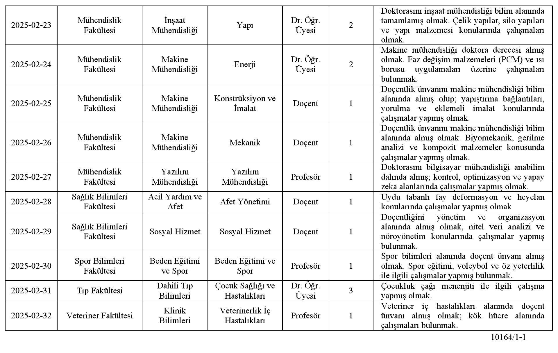 Üniversitemize 2547 sayılı Yükseköğretim Kanunu, 2914 sayılı Yükseköğretim Personel Kanunu ile Öğretim Üyeliğine Yükseltilme ve Atanma Yönetmeliği uyarınca, aşağıda ünvanı ve nitelikleri belirtilen kadrolara öğretim üyesi alınacaktır.