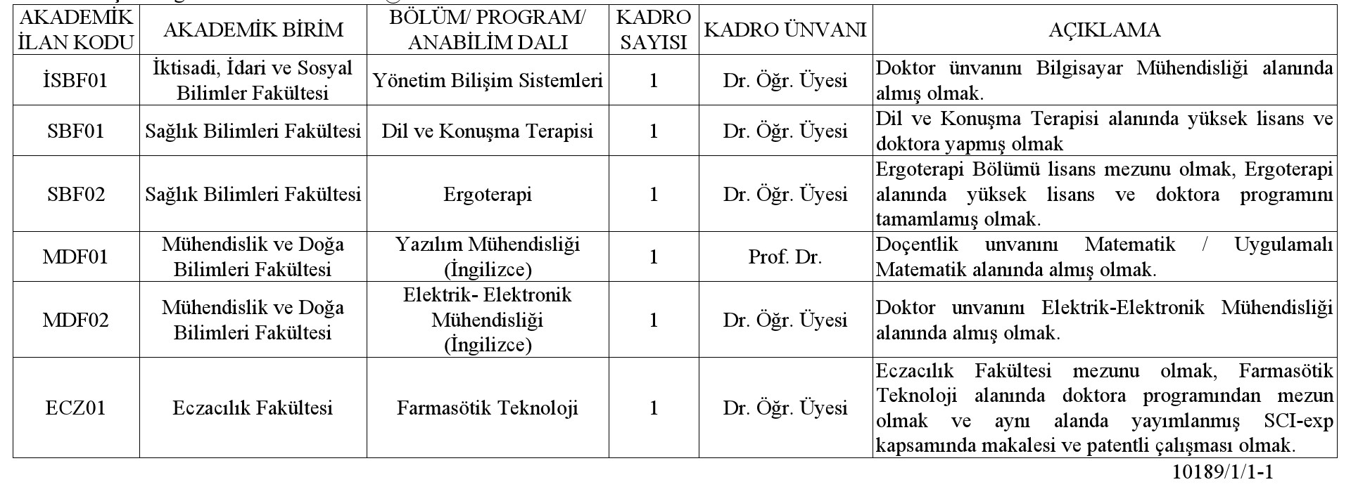 Üniversitemizin aşağıda belirtilen akademik birimlerine, 2547 sayılı Yükseköğretim Kanunu ve Öğretim Üyeliğine Yükseltilme ve Atanma Yönetmeliğinin ilgili maddeleri uyarınca öğretim üyesi alınacaktır.