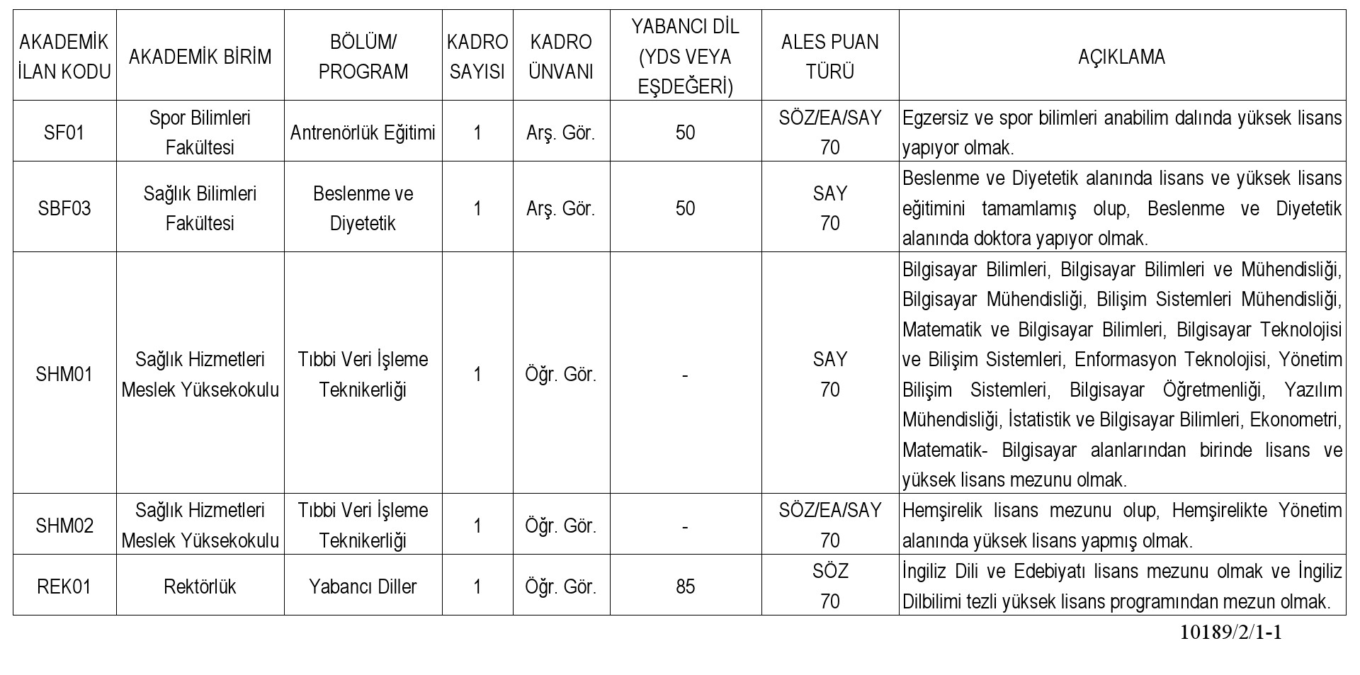 Üniversitemizin aşağıda belirtilen akademik birimlerine, 2547 sayılı Yükseköğretim Kanunu ve Öğretim Üyesi Dışındaki Öğretim Elemanı Kadrolarına Yapılacak Atamalarda Uygulanacak Merkezi Sınav ile Giriş Sınavlarına İlişkin Usul ve Esaslar Hakkında Yönetmeliğin ilgili maddelerine göre öğretim elemanları alınacaktır.
