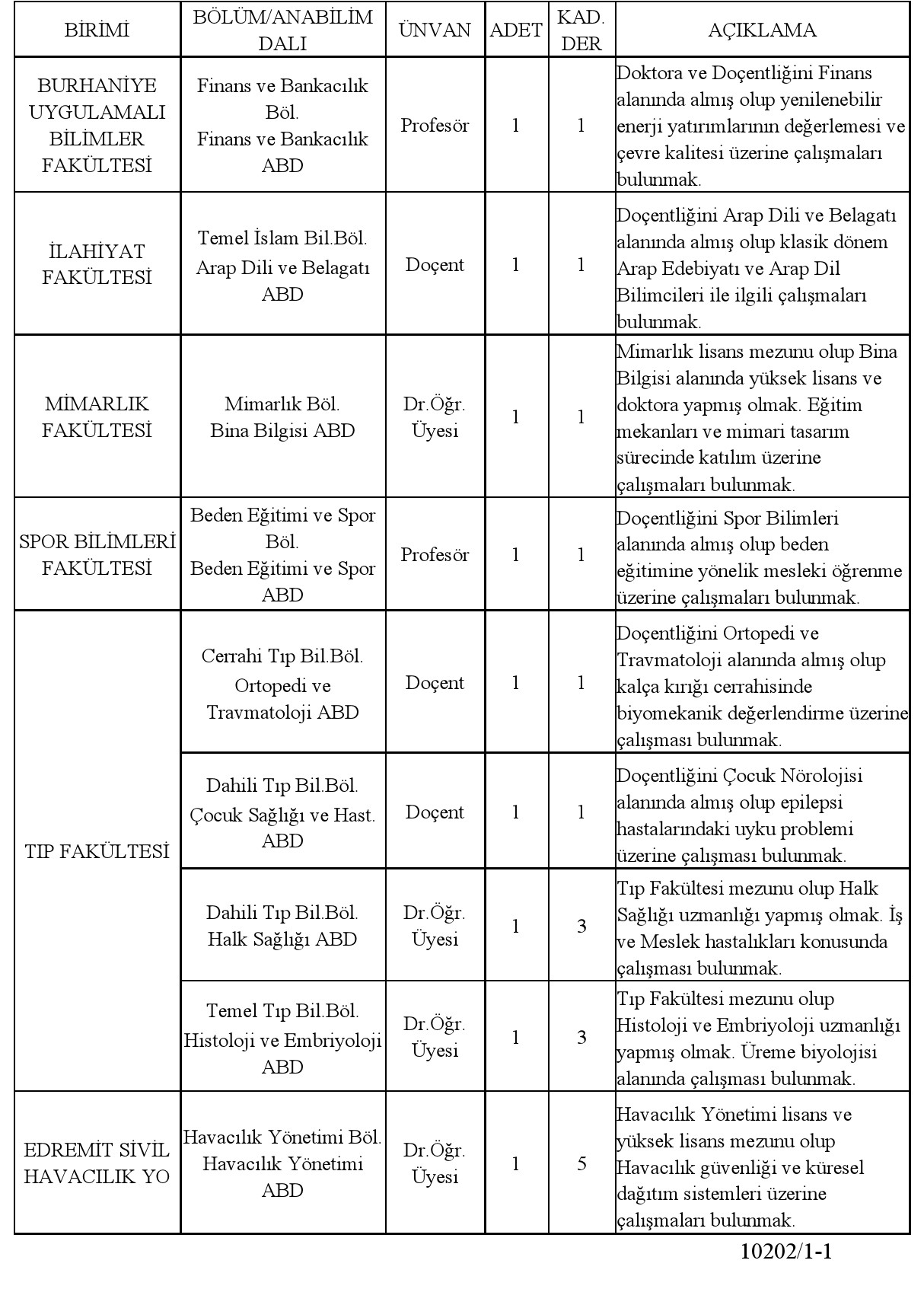 Balıkesir Üniversitesi öğretim üyesi alacak