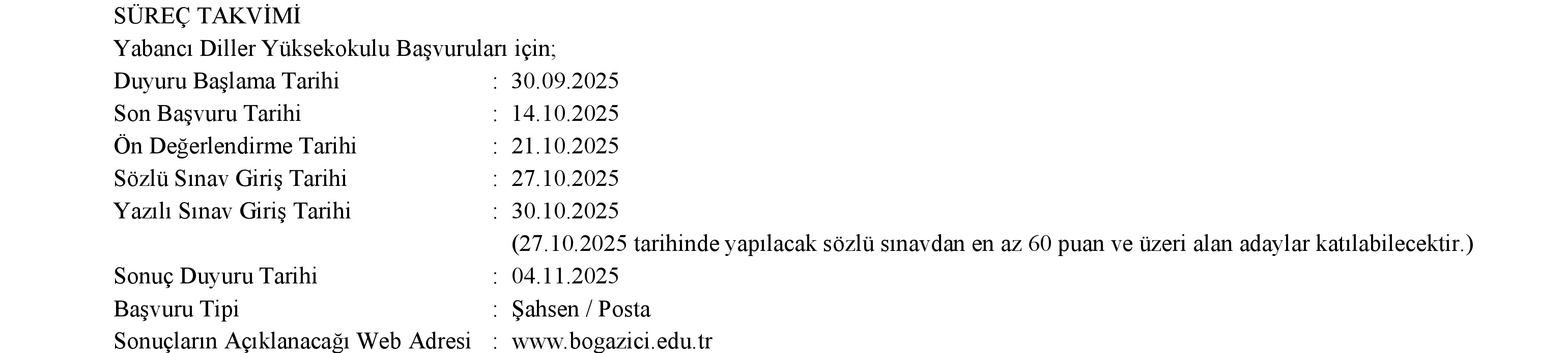 Yabancı Diller Yüksekokulu Başvuruları için;