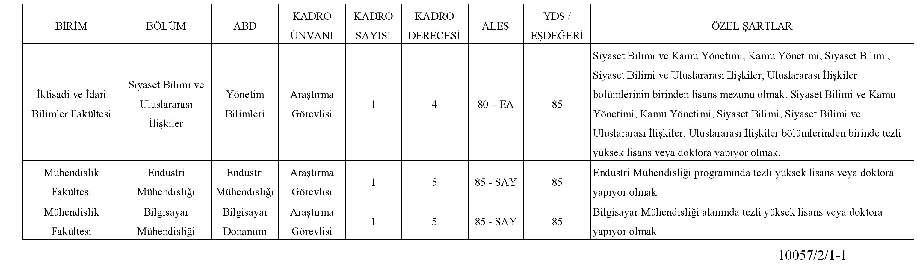 * Atamalar 2547 sayılı Yükseköğretim Kanunu'nun 50/d maddesi uyarınca yapılacaktır.