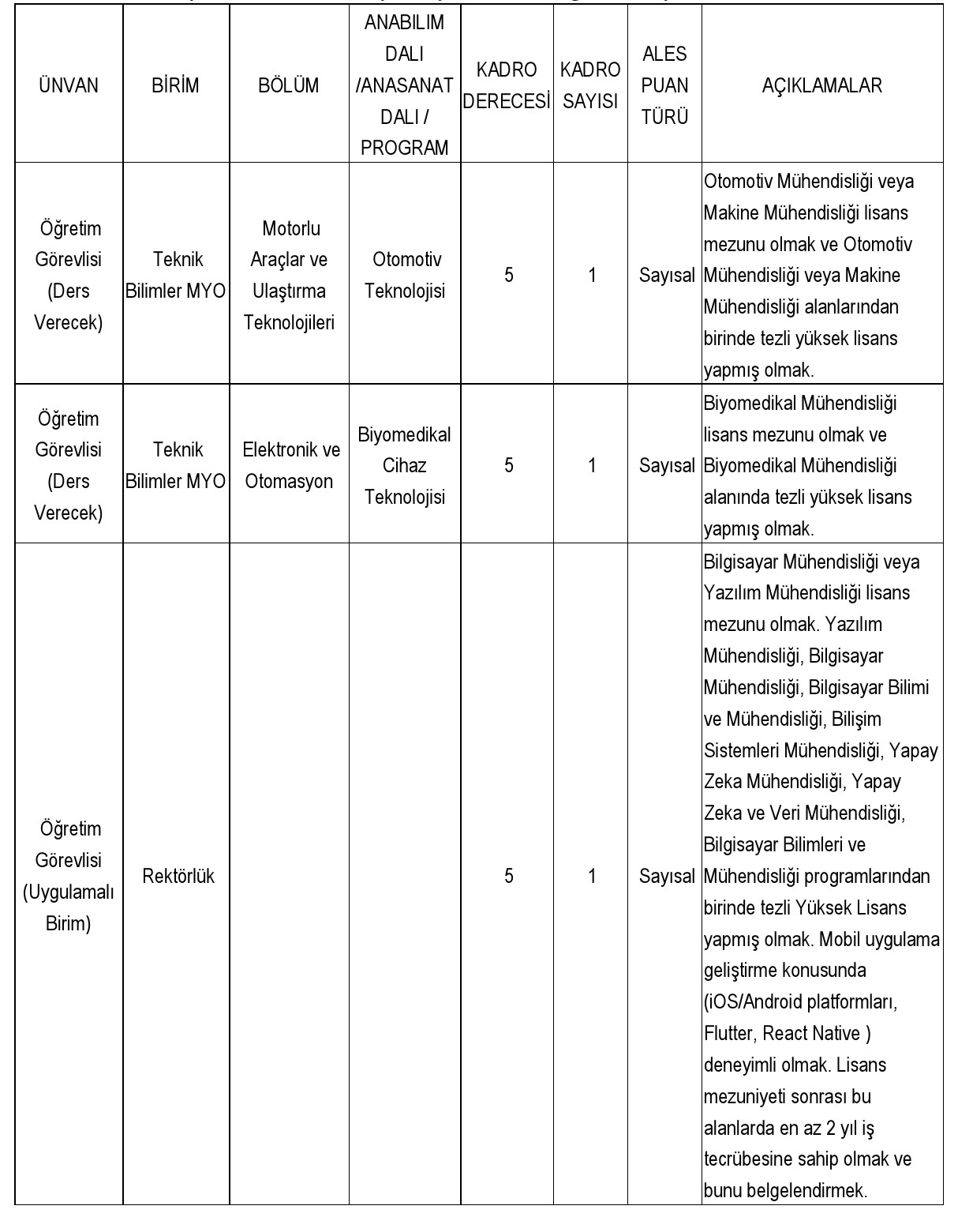 AKADEMİK PERSONEL ALIM İLANI (Profesör, Doçent ve Doktor Öğretim Üyesi)