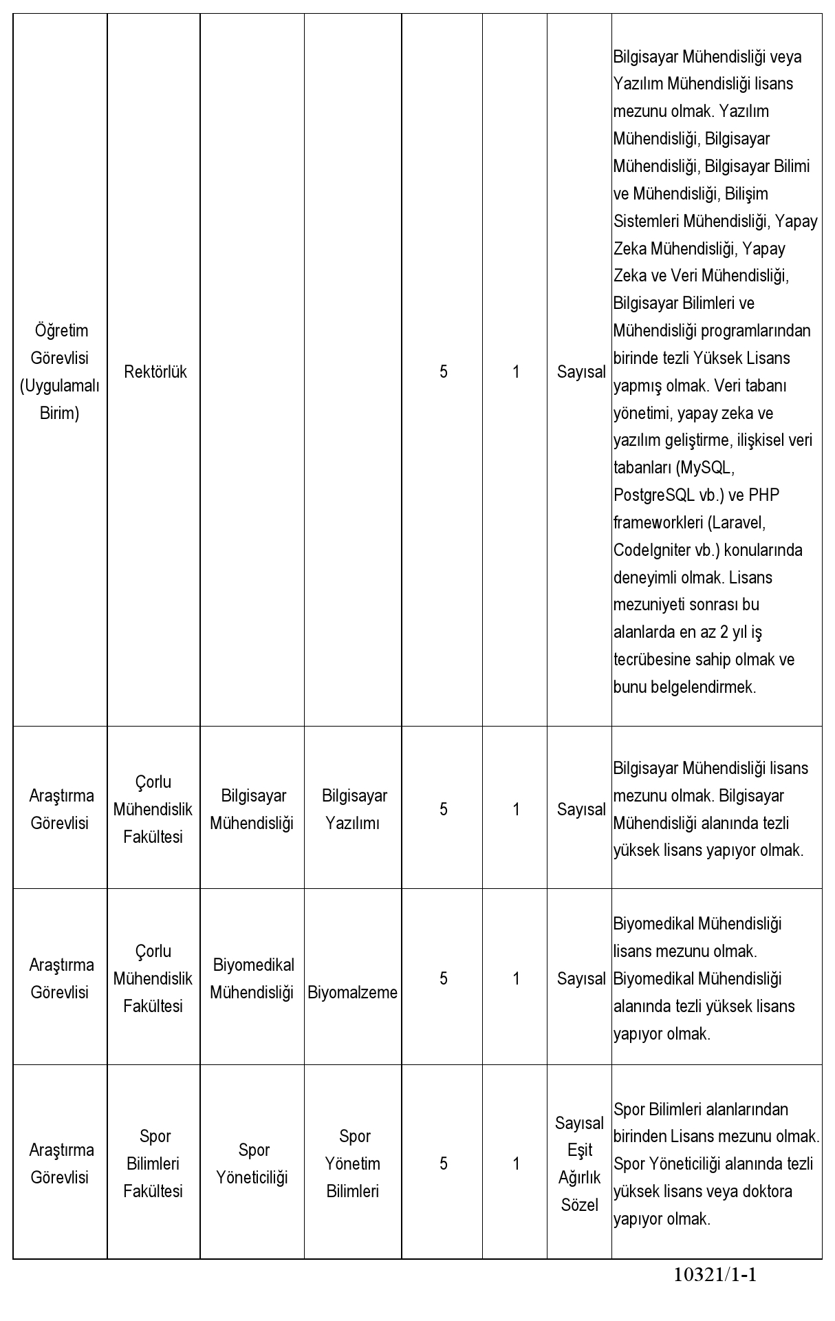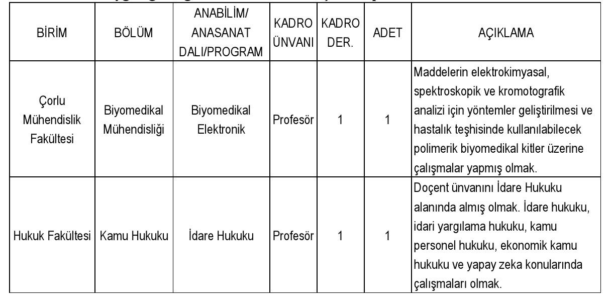 Tekirdağ Namık Kemal Üniversitesi Rektörlüğünden: