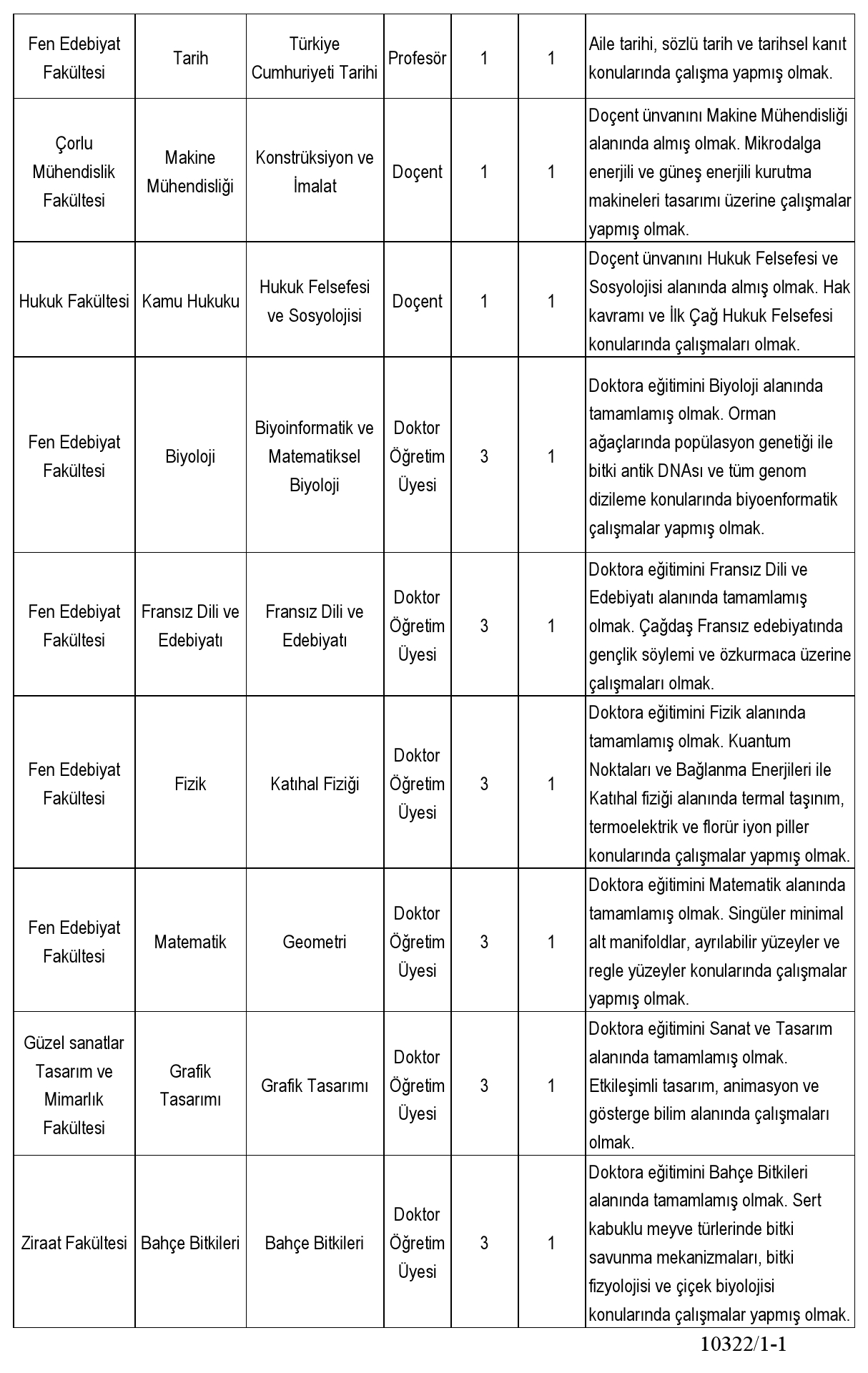 Tekirdağ Namık Kemal Üniversitesi Öğretim Üyesi ve Elemanı Alım İlanı