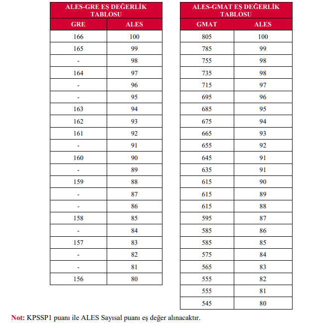 Not: KPSSP1 puanı ile ALES Sayısal puanı eş değer alınacaktır.