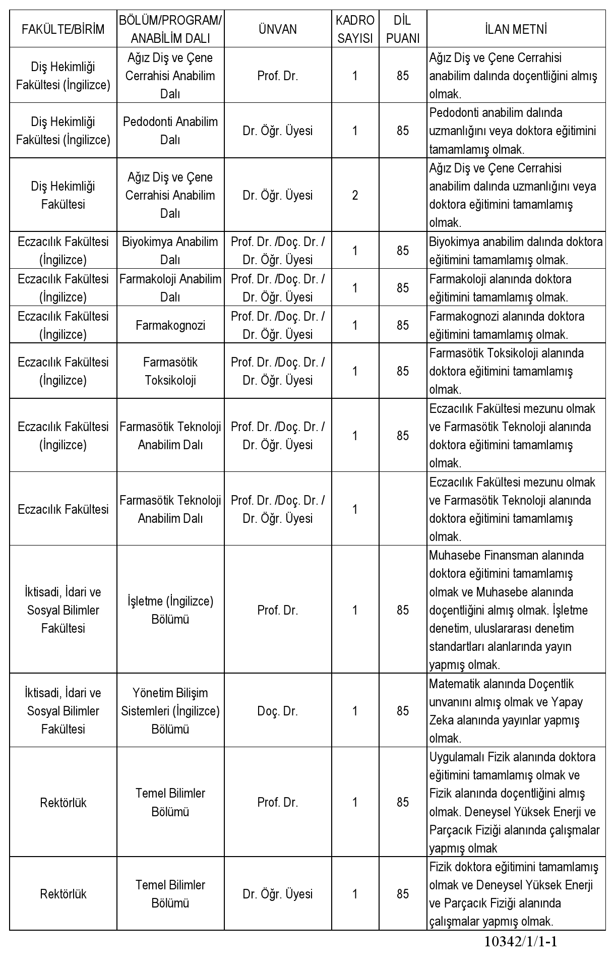 Üniversitemizin aşağıda belirtilen birimlerinde boş bulunan kadrolarına 2547 sayılı Yükseköğretim Kanunu ile Öğretim Üyeliğine Yükseltilme ve Atanma Yönetmeliği hükümleri ve İstinye Üniversitesi Akademik Atama/Yükseltme Kriterleri Yönergesi doğrultusunda Öğretim Üyesi alınacaktır.