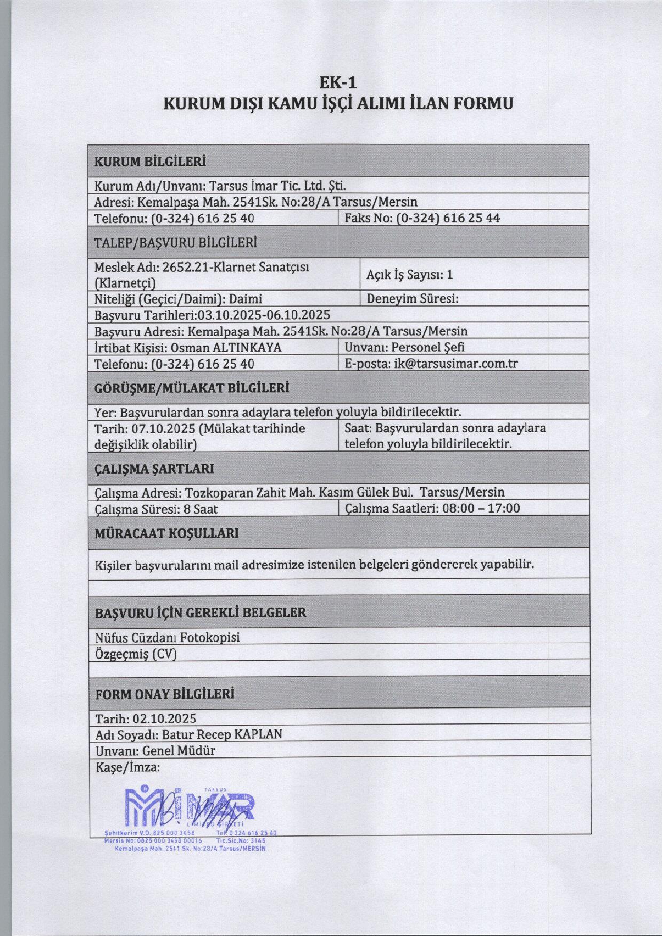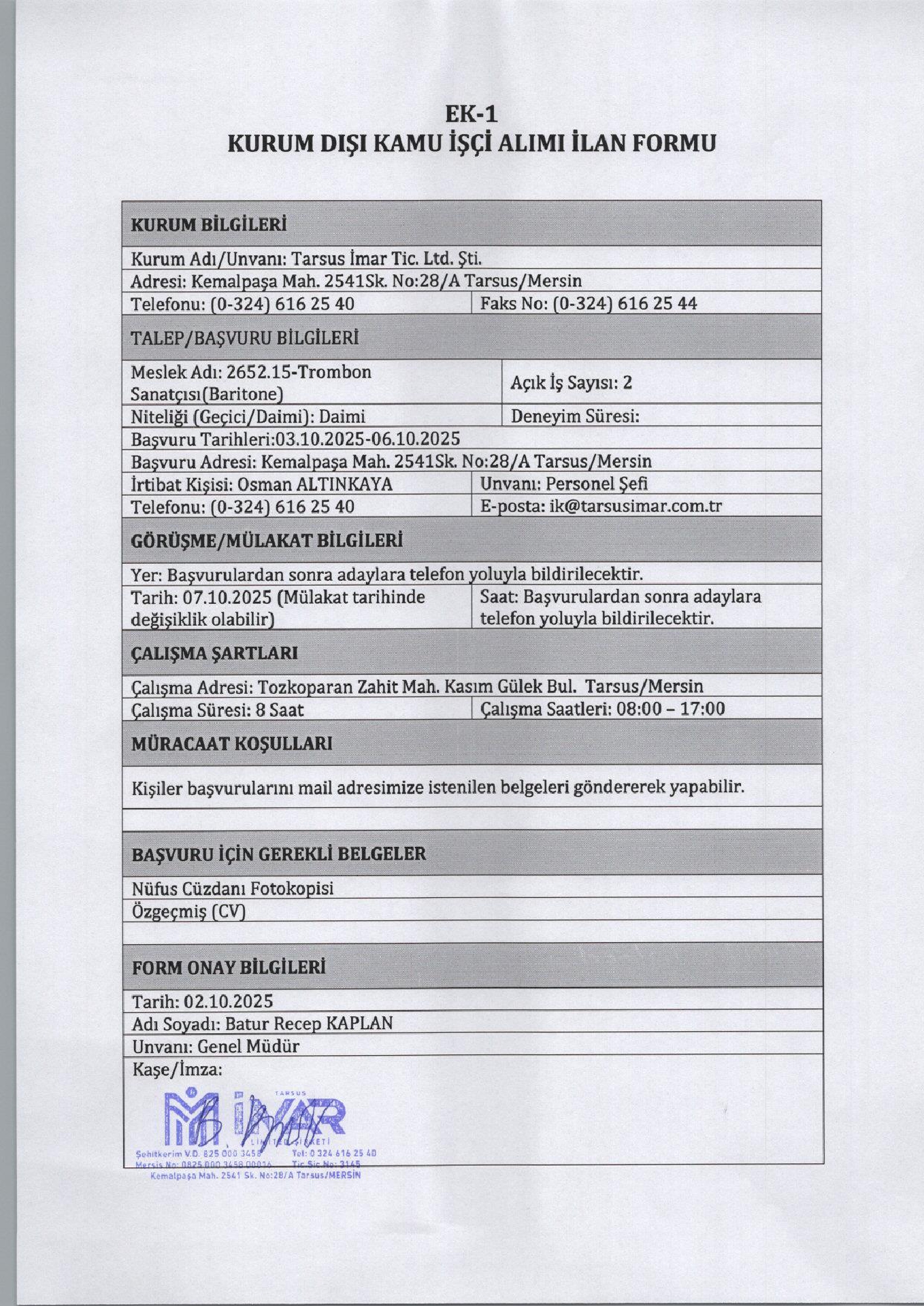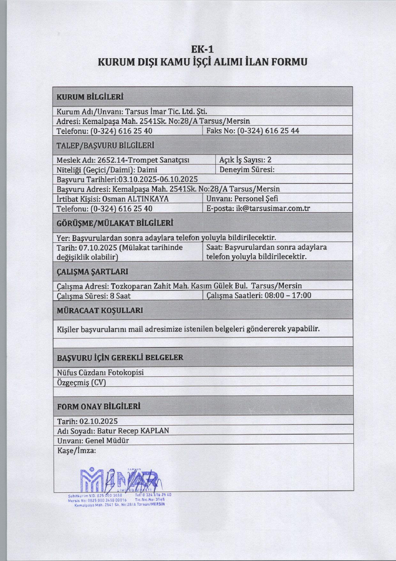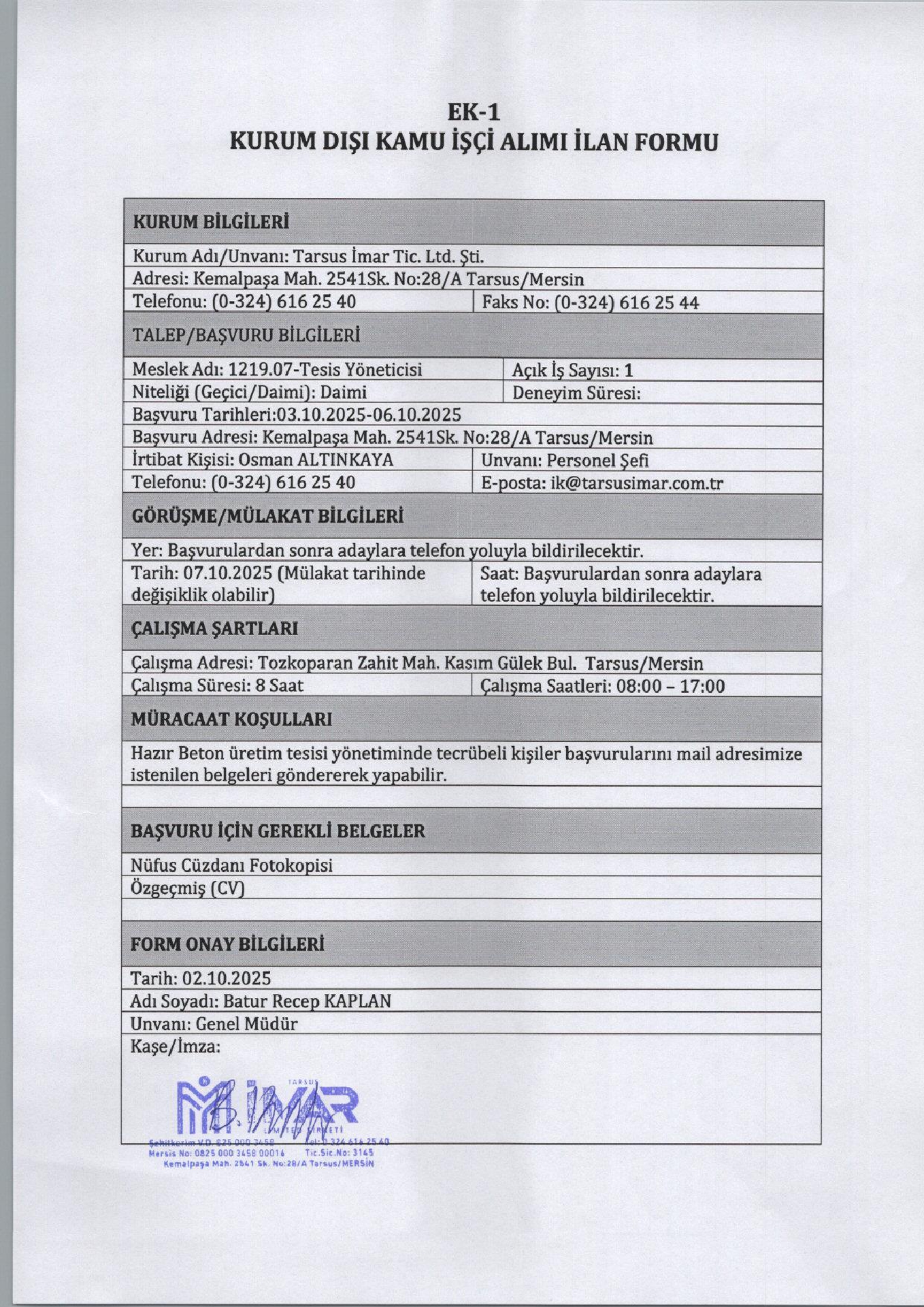 Mersin Tarsus İmar 6 İşçi Alacak. Son başvuru tarihi 6 Ekims 2025