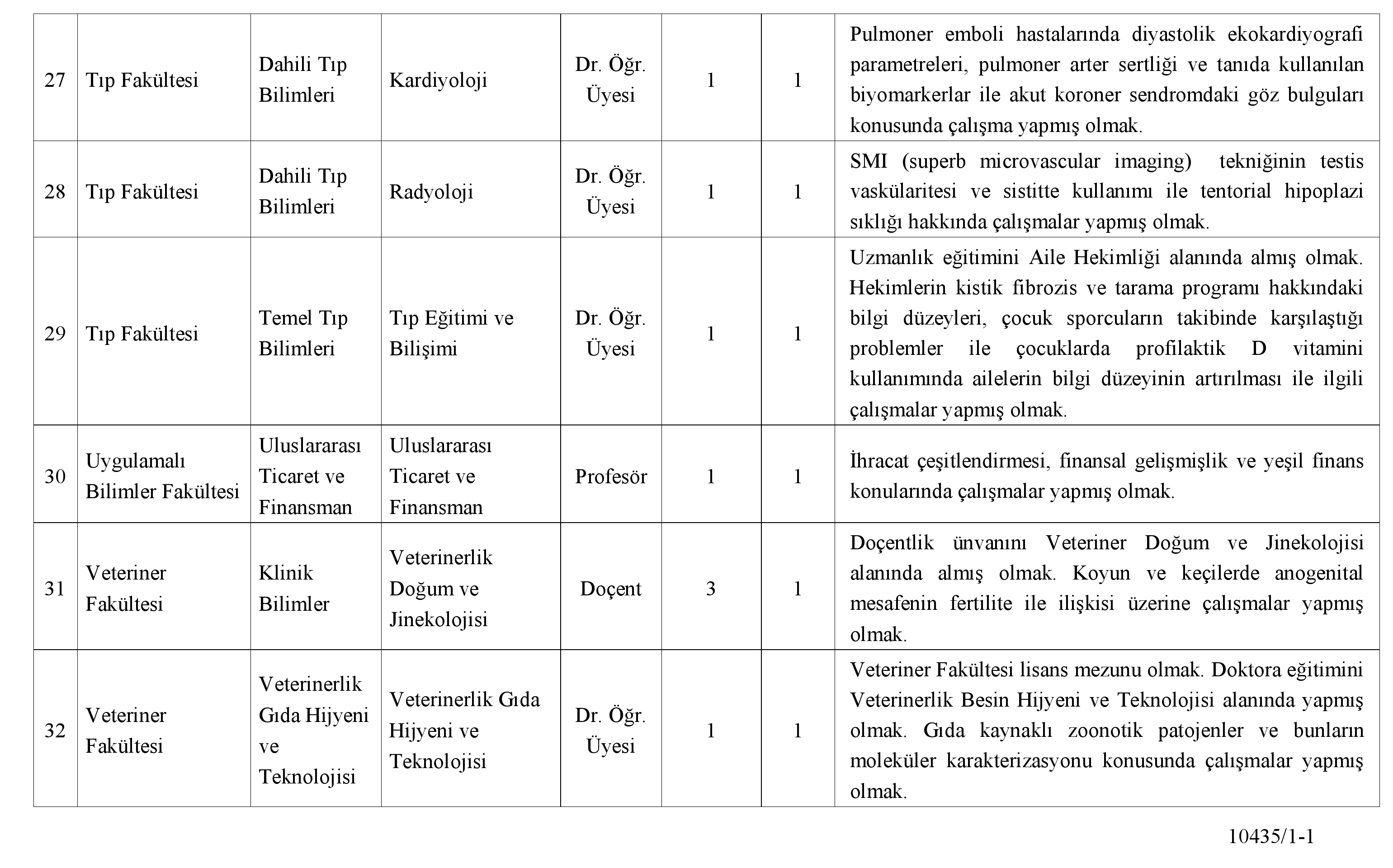 ÖĞRETİM ÜYESİ ALIM İLANI