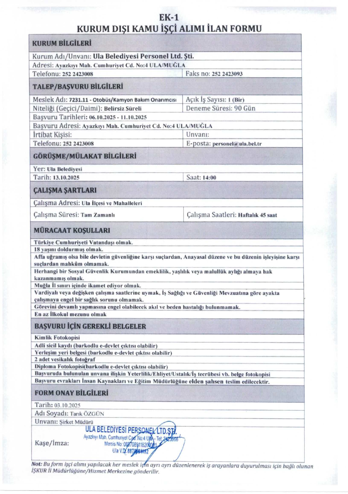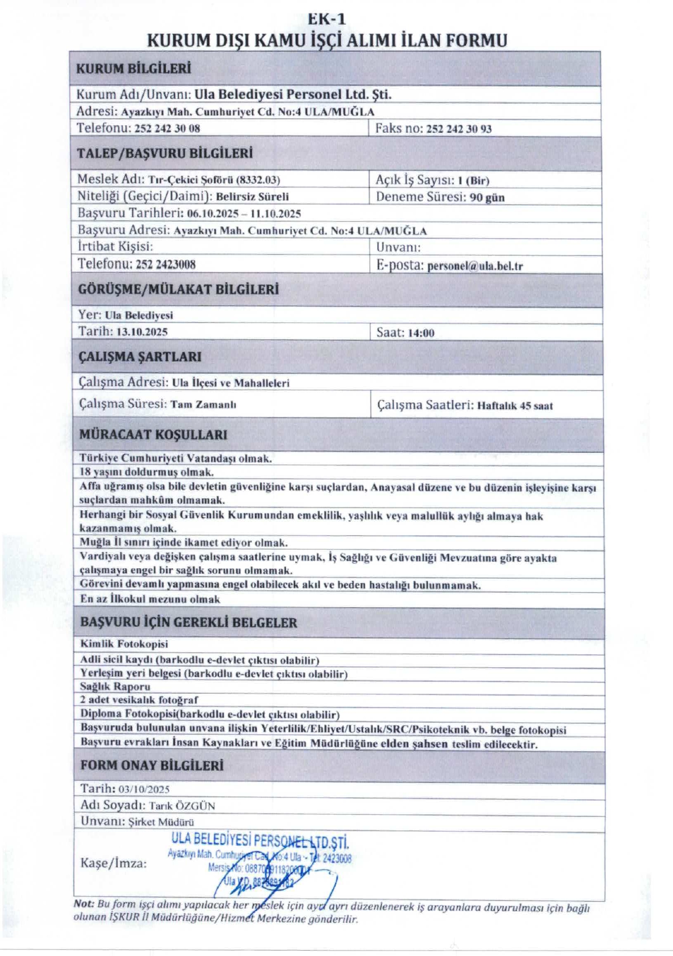 İlan Giriş : 03 Ekim 2025 23:15, Son Güncelleme : 03 Ekim 2025 23:18