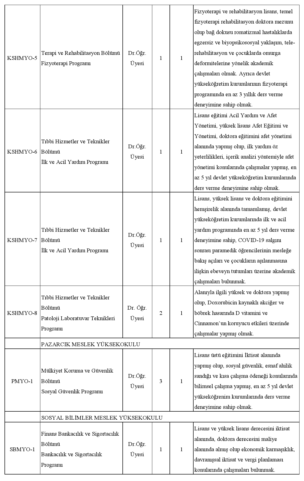 . Profesör, Doçent ve Dr. Öğretim Üyesi kadrosuna https://basvuru.ksu.edu.tr çevrim içi ortam üzerinden başvuru yapılacaktır.