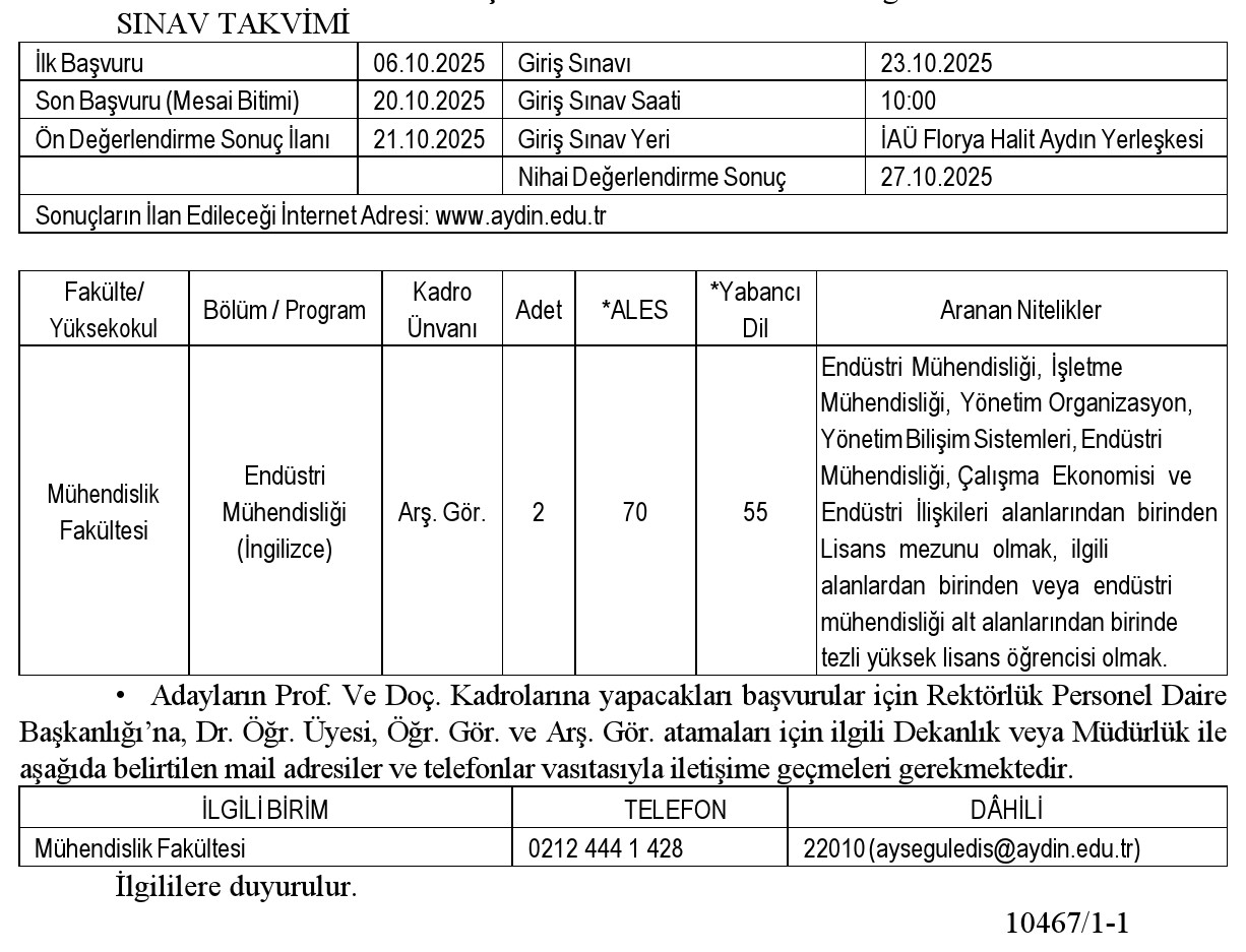 İstanbul Aydın Üniversitesi Öğretim Elemanı Alım İlanı. Son başvuru tarihi 20 Ekim 2025