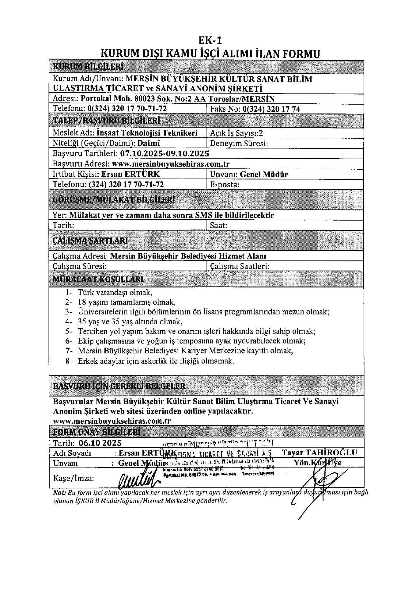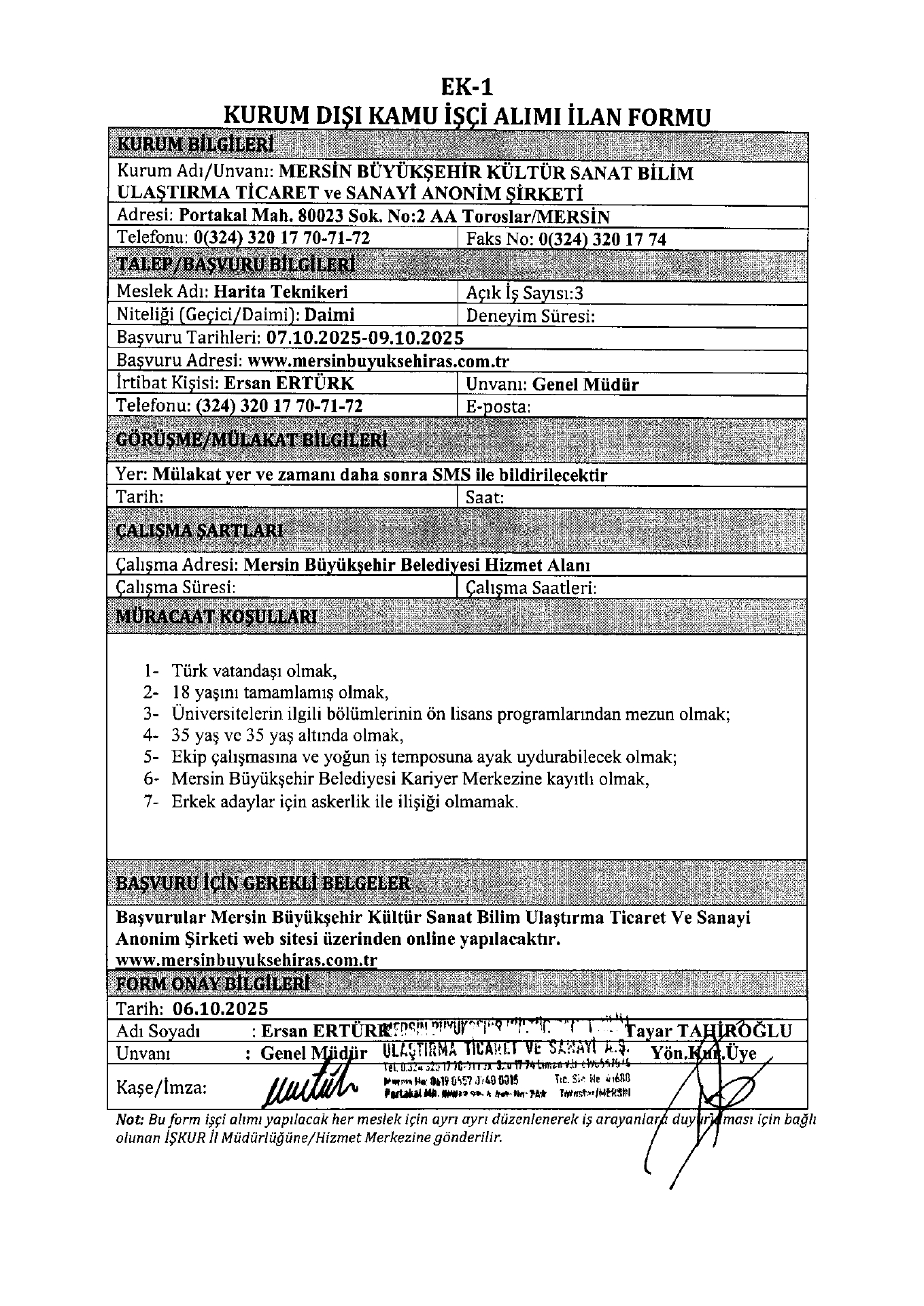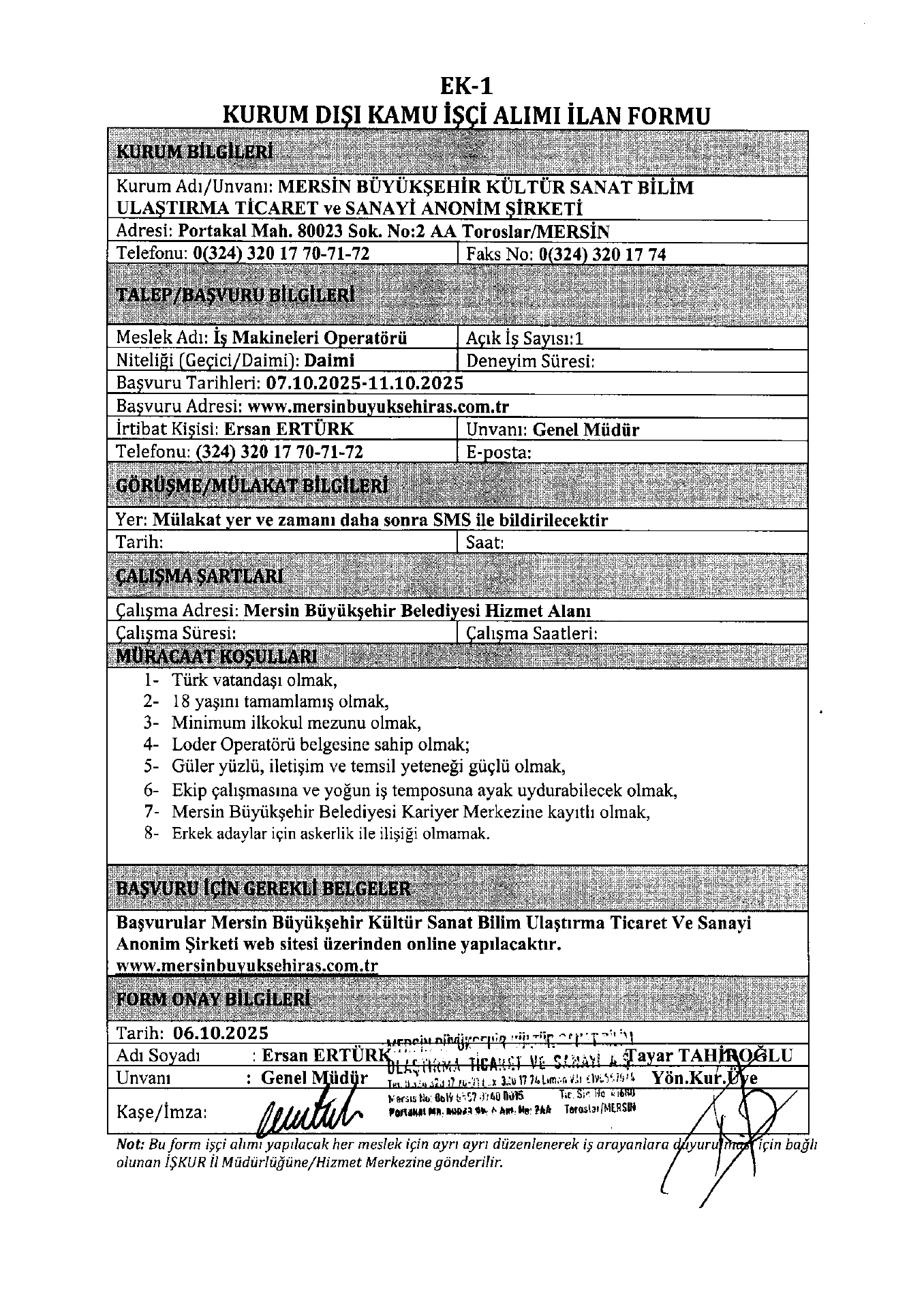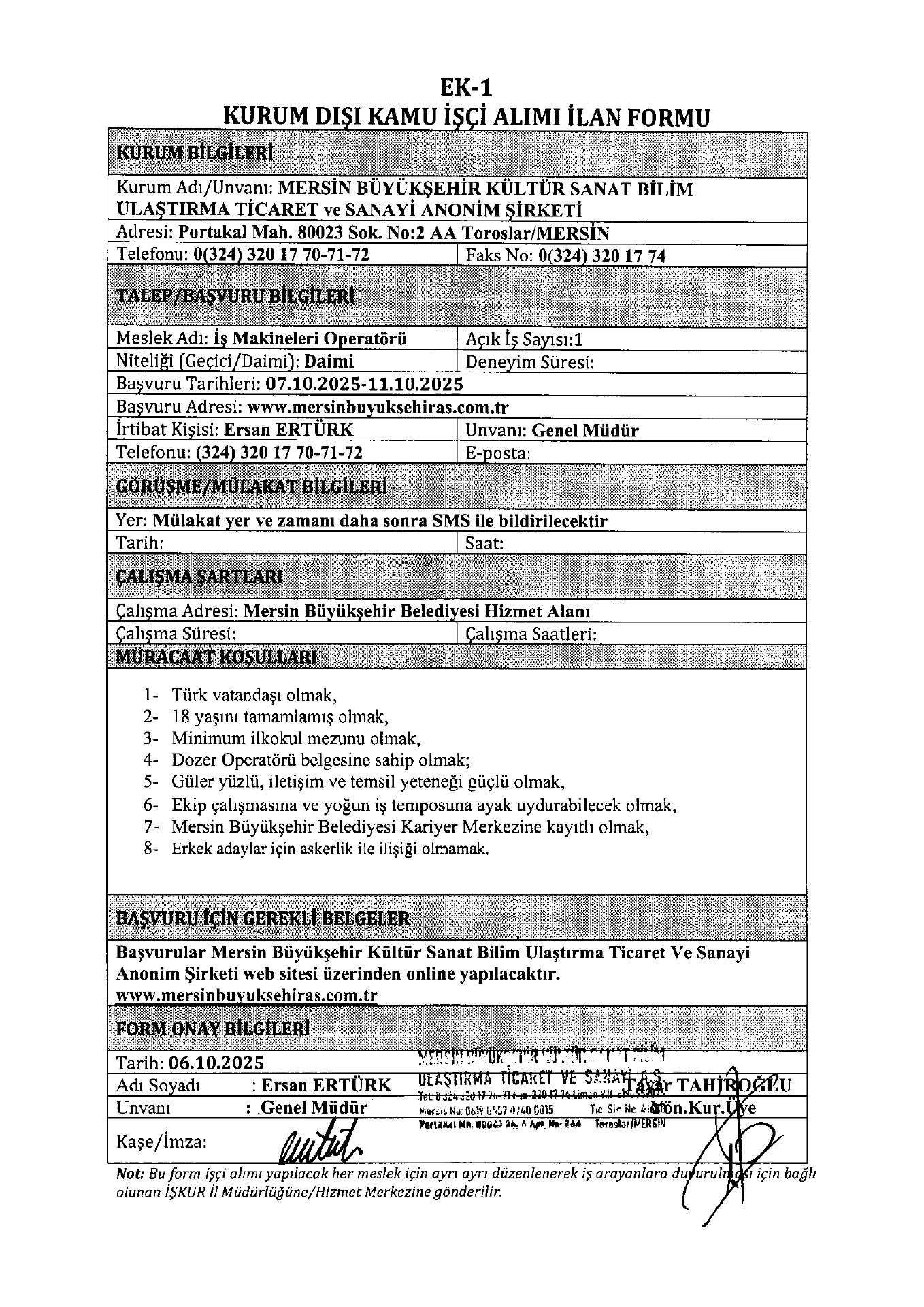 Mersin Büyükşehir Belediyesi 14 İşçi Alacak. Son başvuru tarihi 11 Ekim 2025
