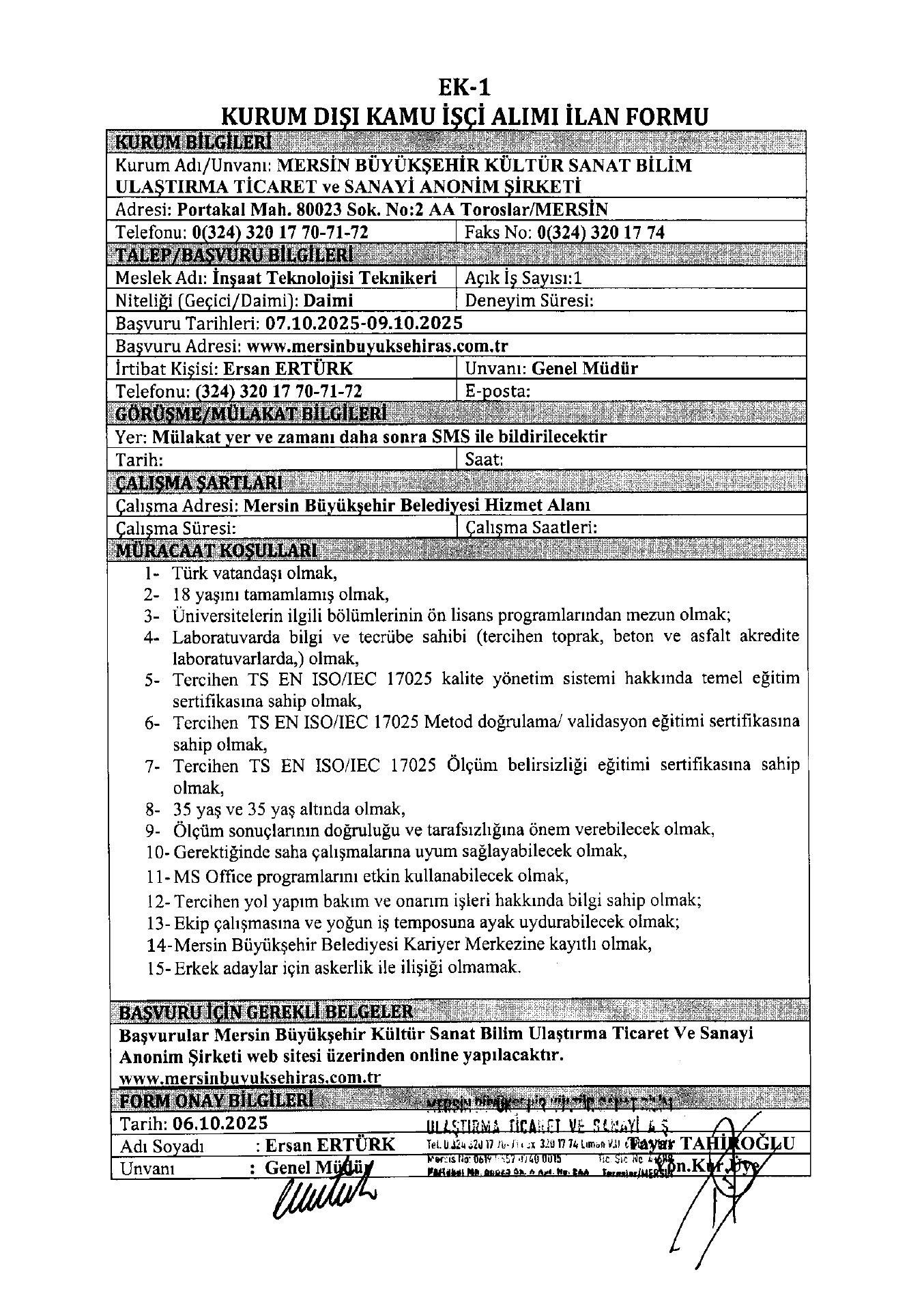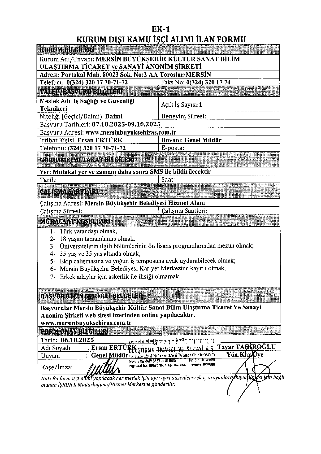 İlan Giriş : 06 Ekim 2025 23:08, Son Güncelleme : 06 Ekim 2025 23:39