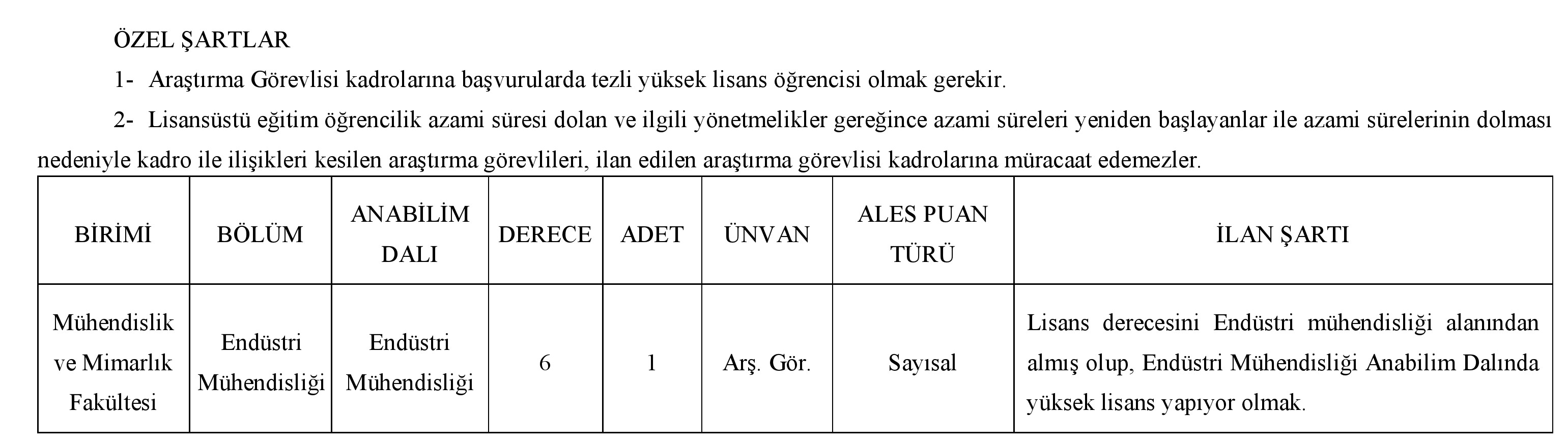 8- Araştırma Görevlisi kadrolarına 2547 sayılı Kanunun 50. Maddesinin (d) fıkrası kapsamında atama yapılacaktır.
