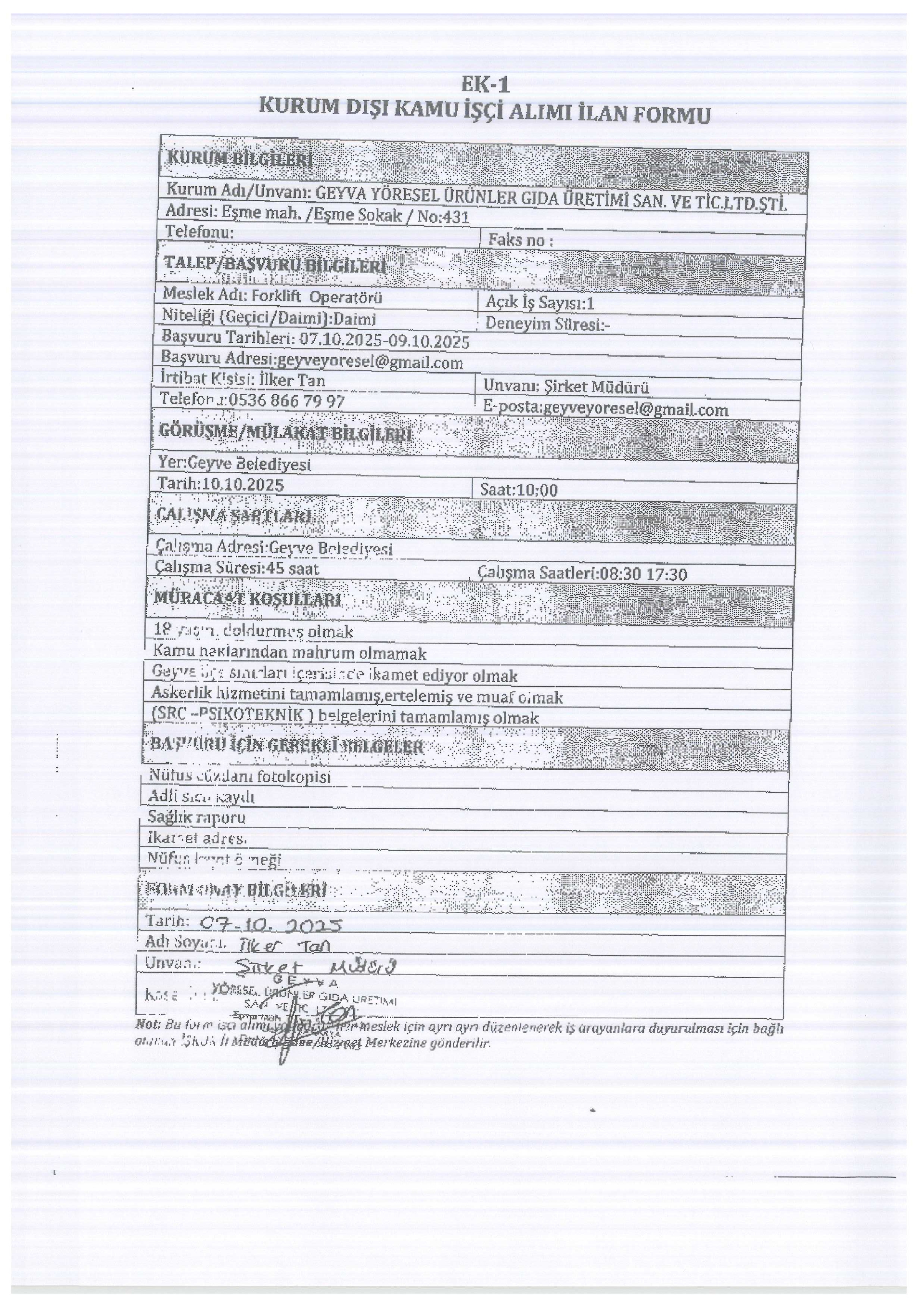 İlan Giriş : 07 Ekim 2025 23:15, Son Güncelleme : 07 Ekim 2025 23:12