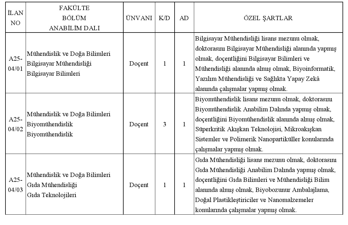 ÖĞRETİM ÜYESİ ALIM İLANI