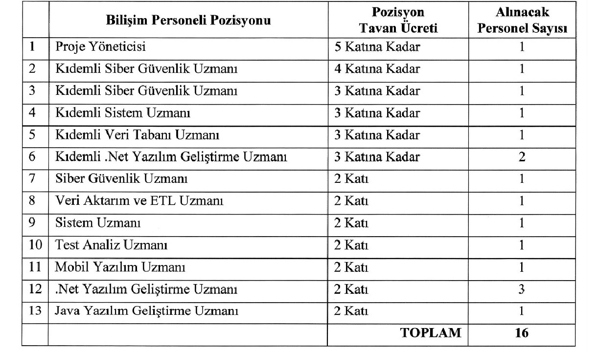 içişleri Bakanlığı Bilgi Teknolojileri Genel Müdürlüğü bünyesinde istihdam edilmek üzere, 31/12/2008 tarih ve 27097 sayılı Resmi Gazete' de yayımlanan "Kamu Kurum ve Kuruluşlarının Büyük Ölçekli Bilgi İşlem Birimlerinde Sözleşmeli Bilişim Personeli İstihdamına İlişkin Esas ve Usuller Hakkında Yönetmelik" in 8' inci maddesi uyarınca, İçişleri Bakanlığı Bilgi Teknolojileri Genel Müdürlüğü tarafından gerçekleştirilecek yazılı ve sözlü sınav başarı sırasına göre 16 (onaltı) Sözleşmeli Bilişim Personeli alınacaktır.