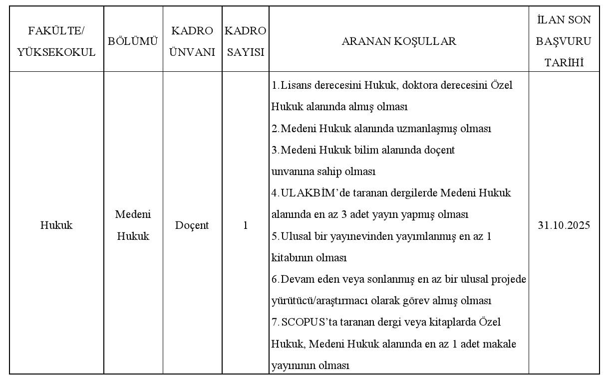 ÖĞRETİM ÜYESİ ALIM İLANI