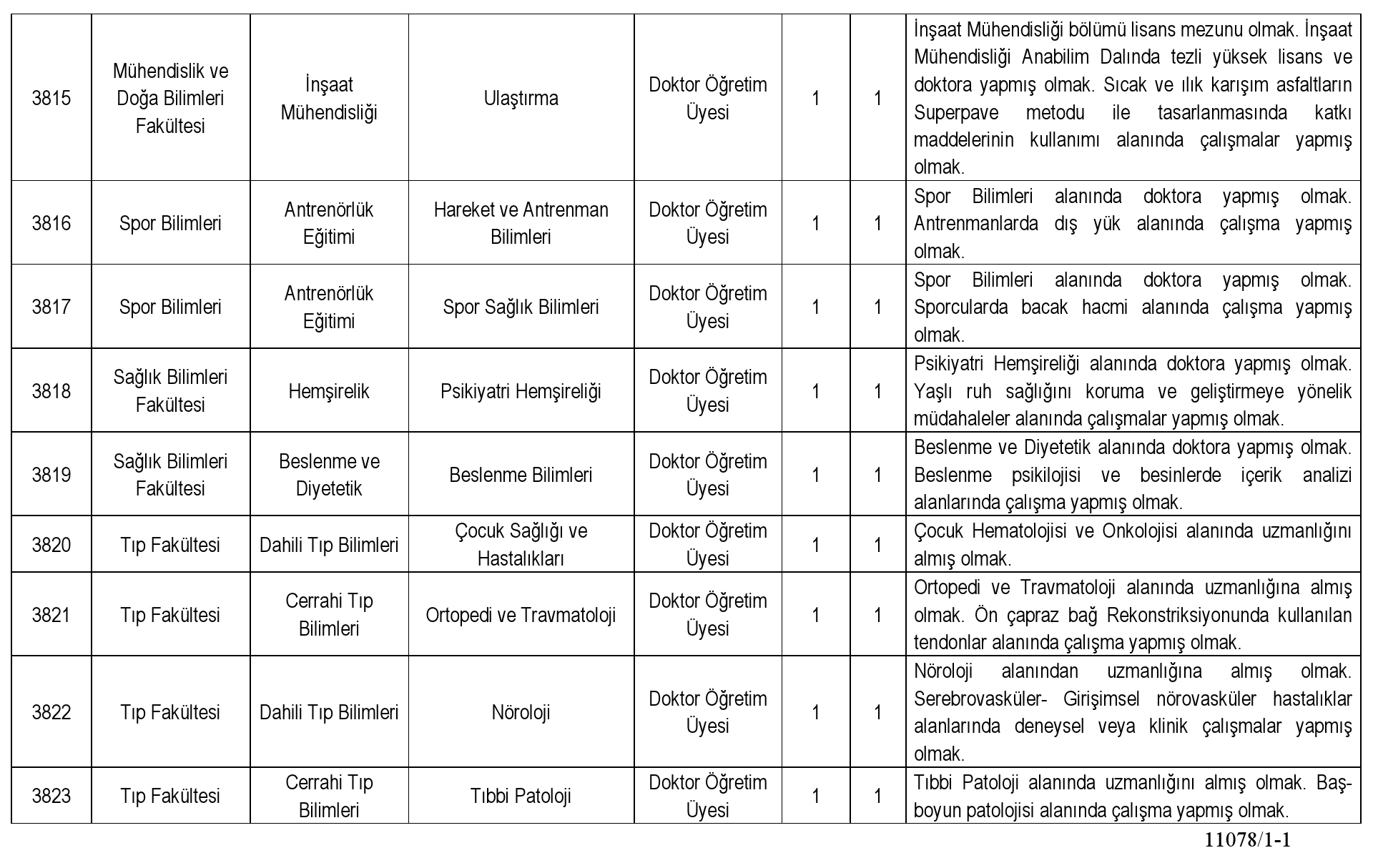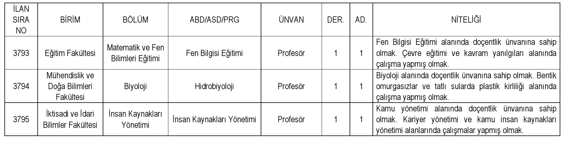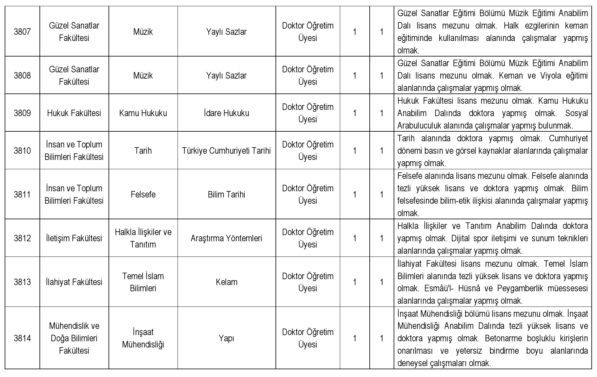 ÖĞRETİM ÜYESİ ALIM İLANI