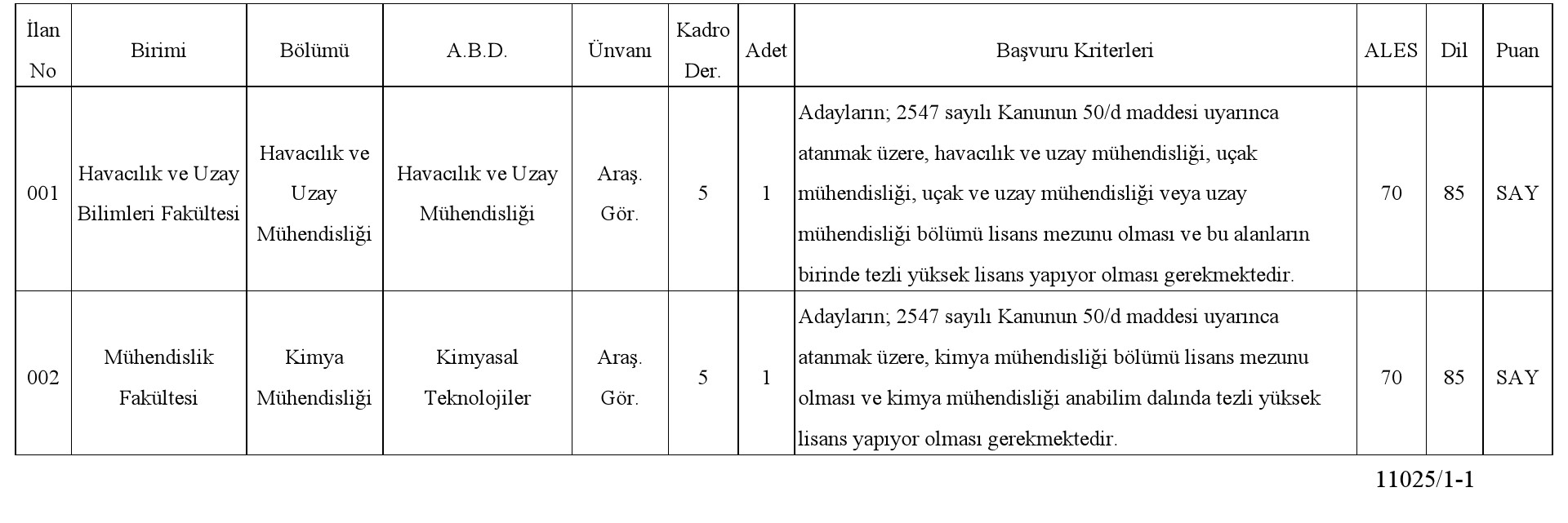 Üniversitemizin aşağıda belirtilen birimlerine, 2547 sayılı Kanunun ilgili maddeleri ve "Öğretim Üyesi Dışındaki Öğretim Elemanı Kadrolarına Yapılacak Atamalarda Uygulanacak Merkezi Sınav ile Giriş Sınavlarına İlişkin Usul ve Esaslar Hakkında Yönetmelik"in ilgili hükümleri uyarınca ilanda belirtilen şartları taşıyan araştırma görevlileri alınacaktır.