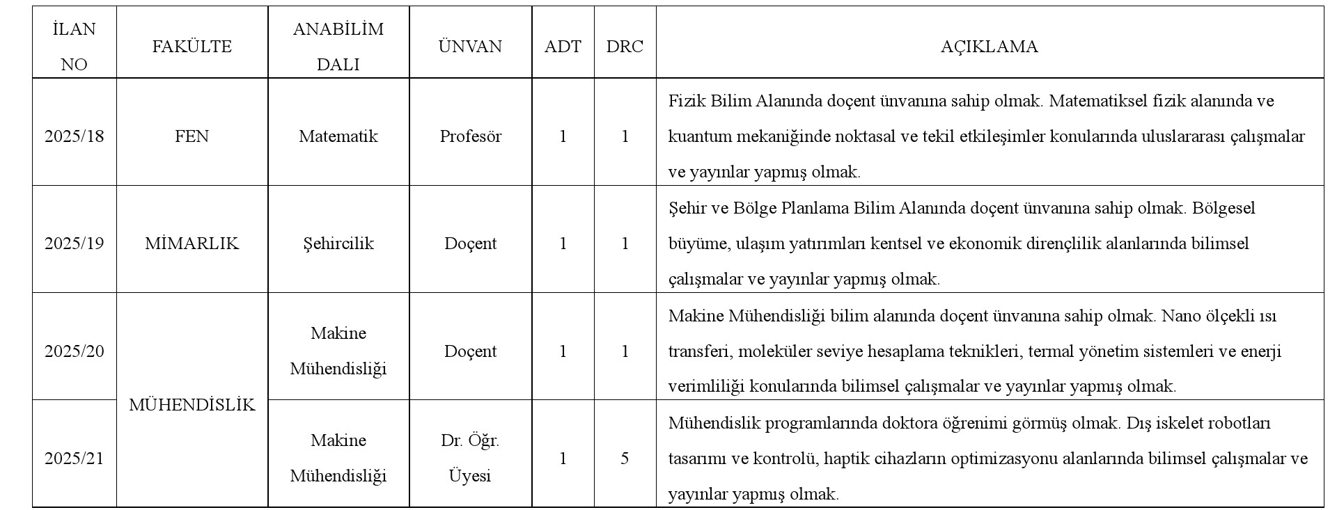 Aşağıda anabilim dalı itibariyle ünvan ve şartları belirtilen, Enstitümüz birimlerinde açık bulunan kadrolara 2547 sayılı Yükseköğretim Kanunu'nun, 12/06/2018 tarihli Resmi Gazete'de yayımlanan "Öğretim Üyeliğine Yükseltilme ve Atanma Yönetmeliği"nin ilgili maddeleri, Enstitümüzün Minimum Akademik Yükseltme ve Atama Ölçütleri ile İlgili Esasları ve "Yükseköğretim Kurumlarında Yabancı Dil Öğretimi ve Yabancı Dille Öğretim Yapılmasında