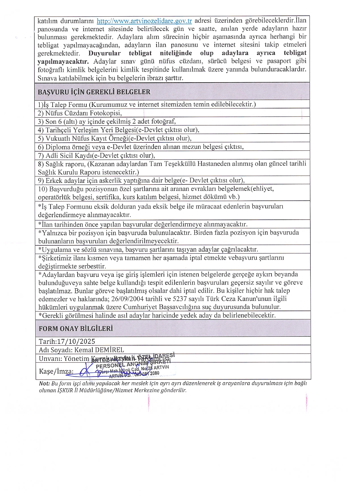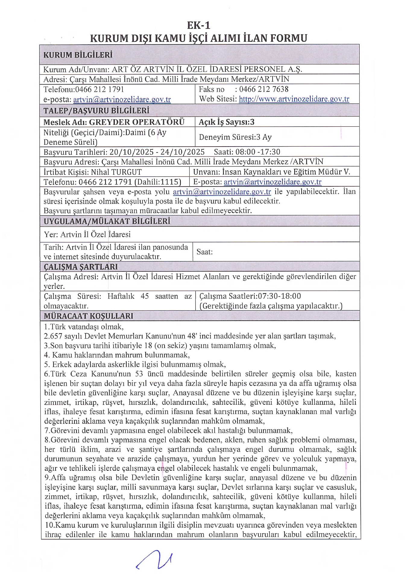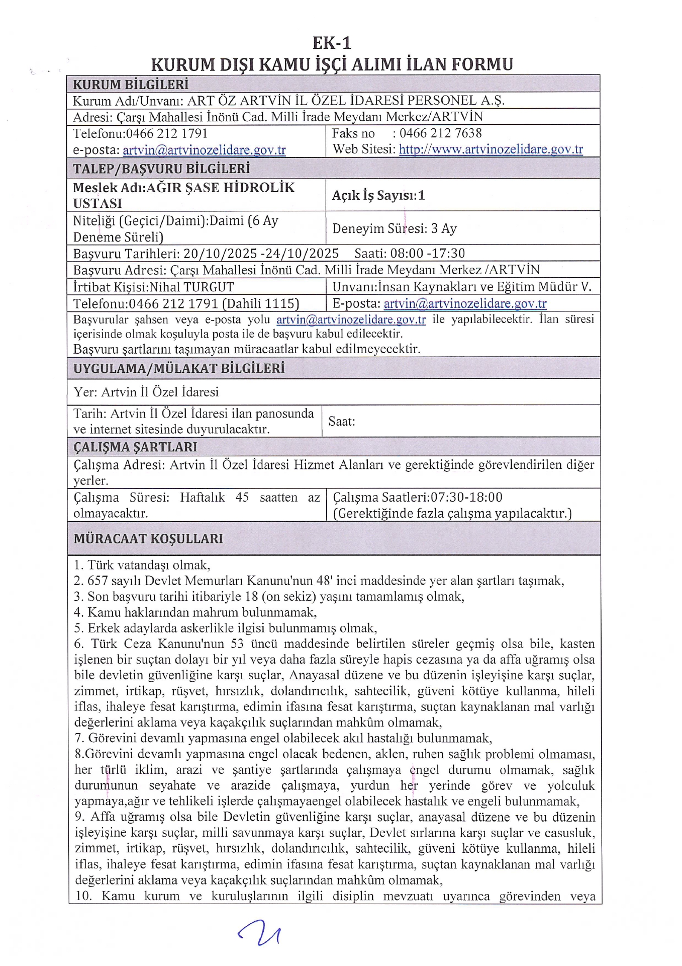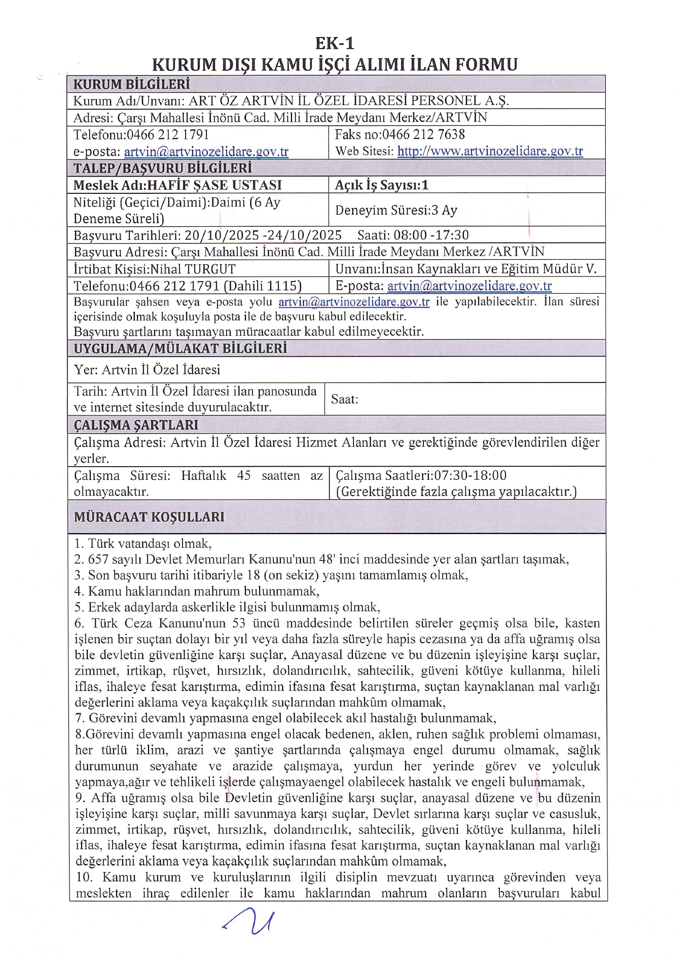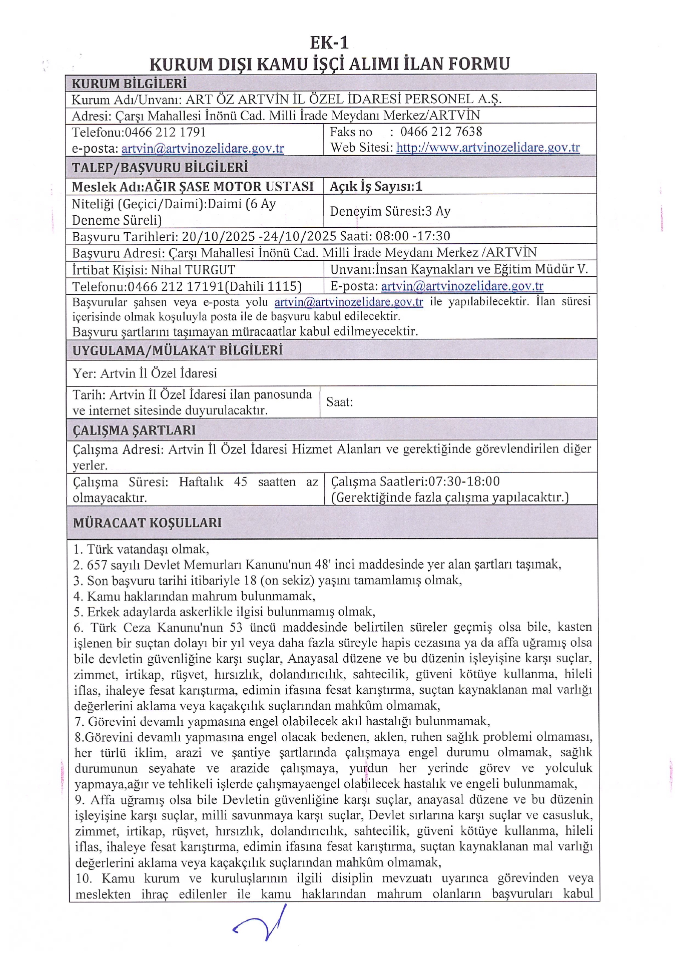 Ana sayfaDaimi İşçi İlanları Artvin İl Özel İdaresi 3 İşçi Alacak Artvin İl Özel İdaresi 3 İşçi Alacak. Son başvuru tarihi 24 Ekim 2025 Kaynak : İşkur İlan Giriş : 21 Ekim 2025 01:05, Son Güncelleme : 21 Ekim 2025 02:16 Yazdır Yorumlar (0) Abone Ol