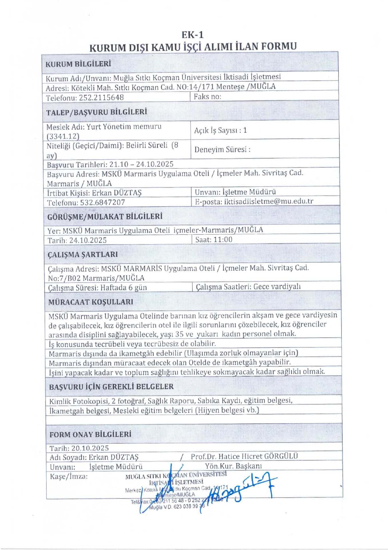 Muğla Sıtkı Koçman Üniversitesi 1 İşçi Alım İlanı. Son başvuru tarihi 24 Ekim 2025