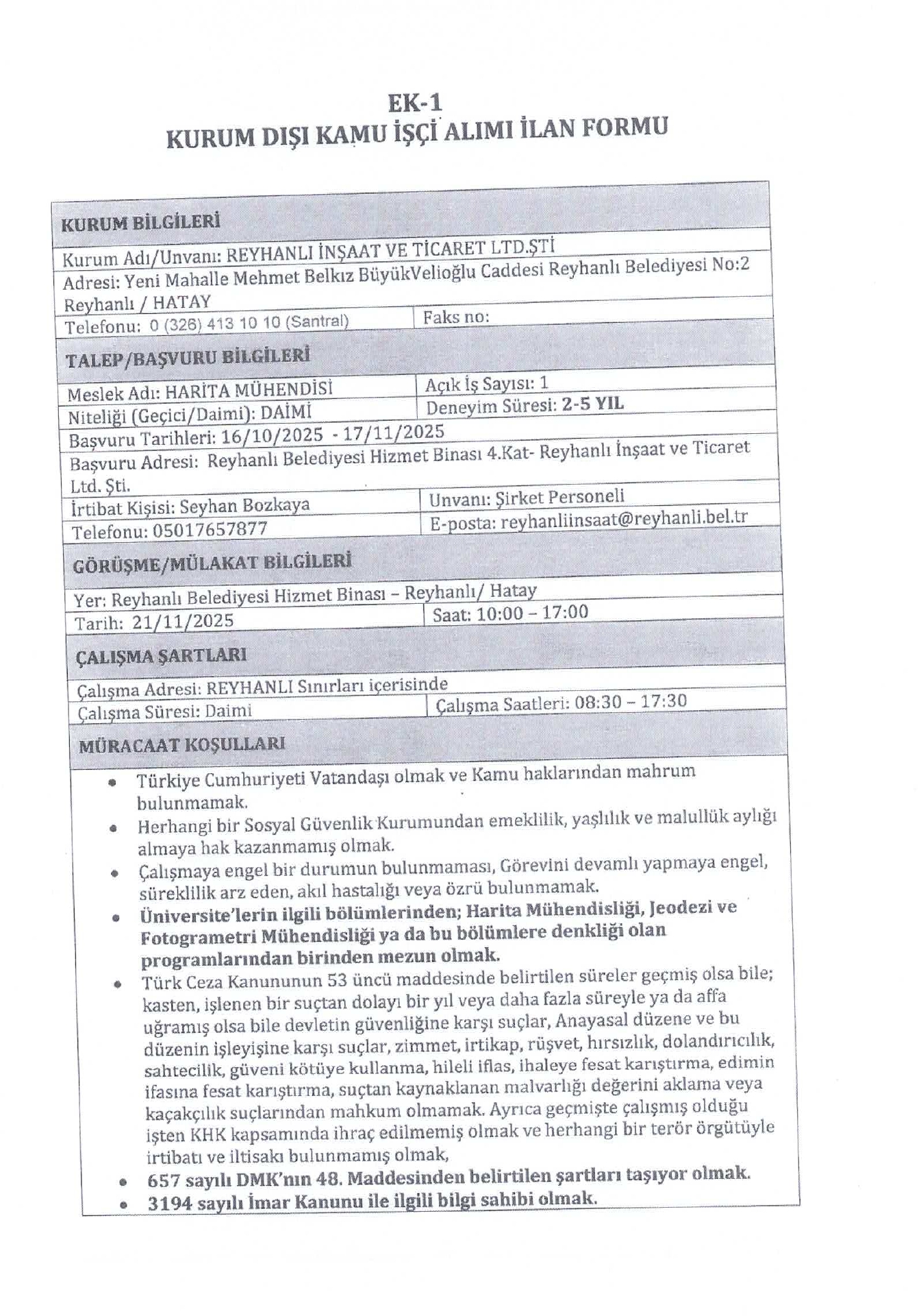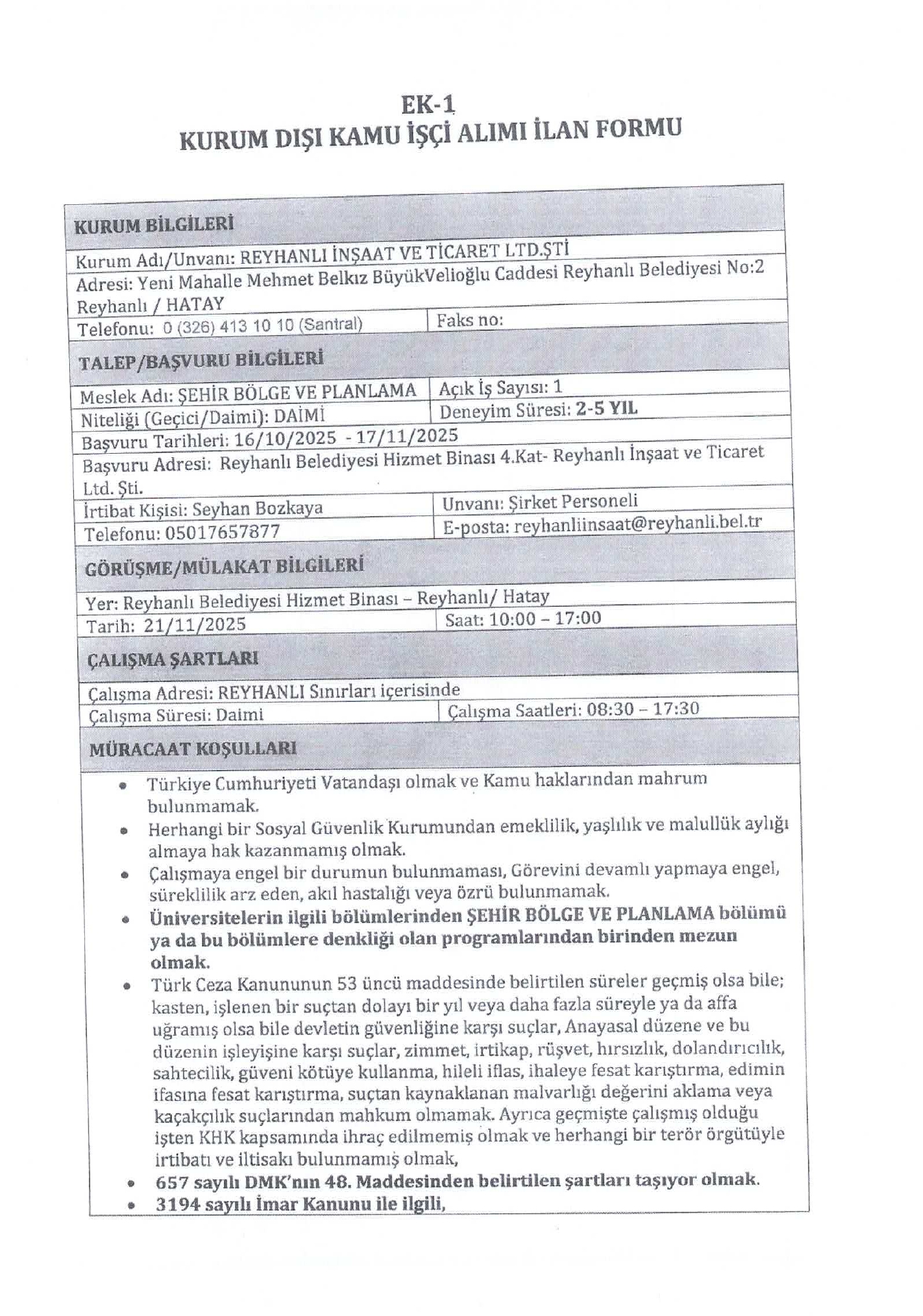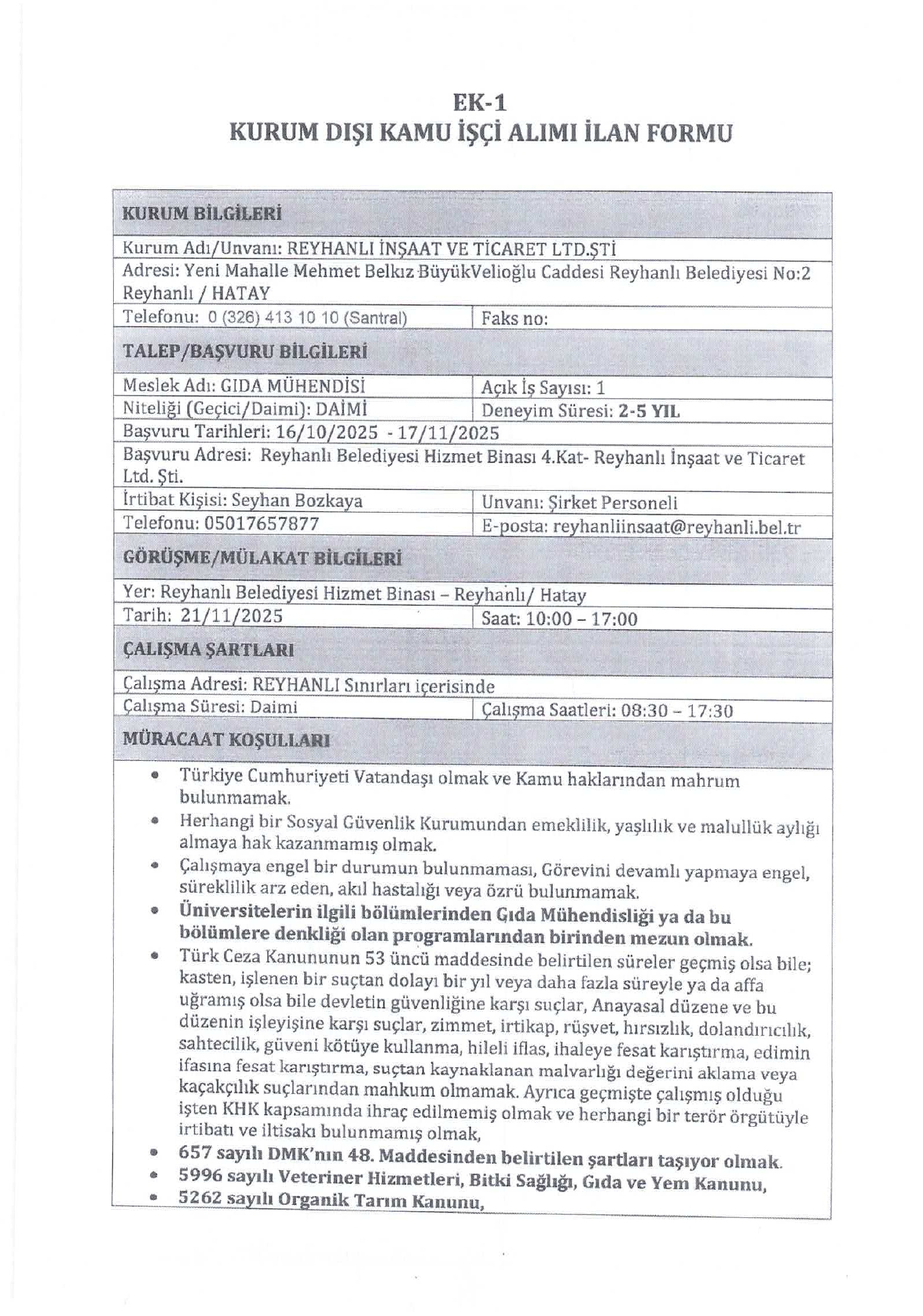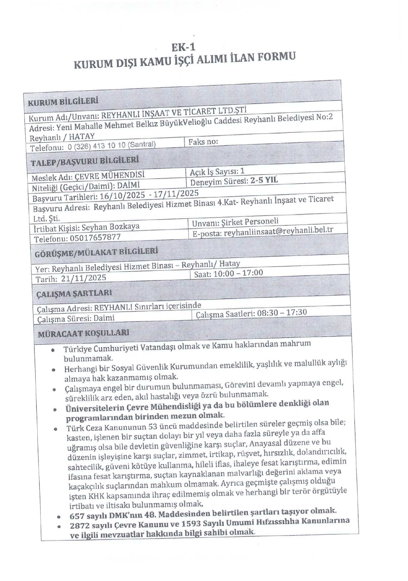 Ana sayfaDaimi İşçi İlanları Hatay Reyhanlı İnşaat 4 İşçi Alacak Kaynak : İşkur İlan Giriş : 21 Ekim 2025 01:31, Son Güncelleme : 21 Ekim 2025 02:06 Yazdır Yorumlar (0) Abone Ol