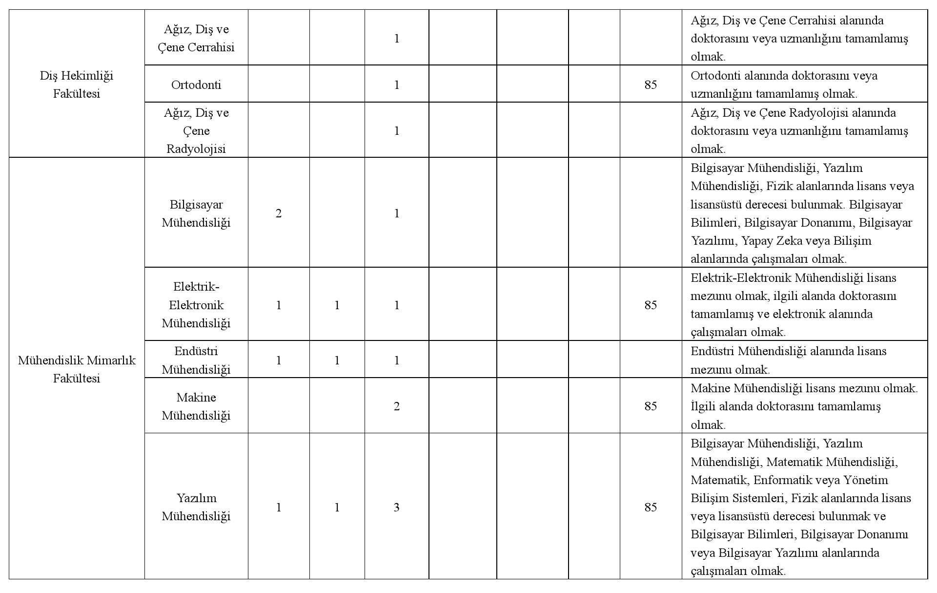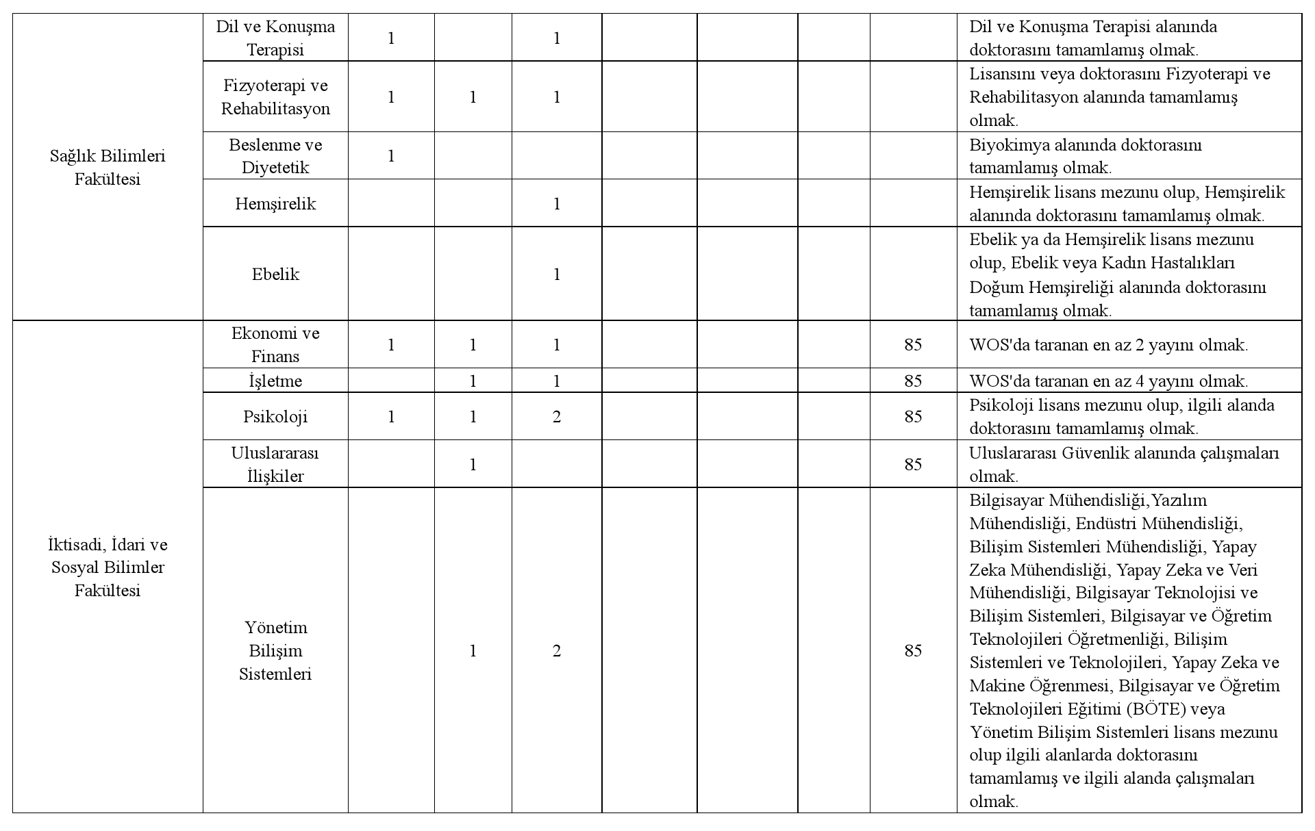 Üniversitemizin aşağıda belirtilen Fakülte/Yüksekokul/Meslek Yüksekokulu bölüm ve programlarına 2547 sayılı Kanun'un ilgili maddeleri hükümlerince öğretim elemanları alınacaktır. Resmi Gazete'de yayımlanan "Öğretim Üyeliğine Yükseltilme ve Atanma Yönetmeliği", 09/11/2018 tarihli ve 30590 sayılı Resmi Gazete'de yayımlanan "Öğretim Üyesi Dışındaki Öğretim Elemanı Kadrolarına Yapılacak Atamalarda Uygulanacak Merkezi Sınav ile Giriş Sınavlarına İlişkin Usul ve Esaslar Hakkında Yönetmelik" ve "İstanbul Nişantaşı Üniversitesi Öğretim Üyesi Atama ve Yükseltme Ölçütleri Yönergesi" hükümleri uyarınca ilandaki "Aranan Nitelikler" başlığı altında yer alan koşulları sağlayan öğretim elemanlarından;