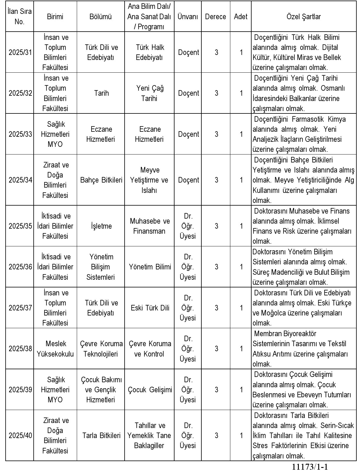 - Üniversitenin uygun görmesi halinde her aşamada ilanın tamamı veya bir bölümü iptal edilebilir.