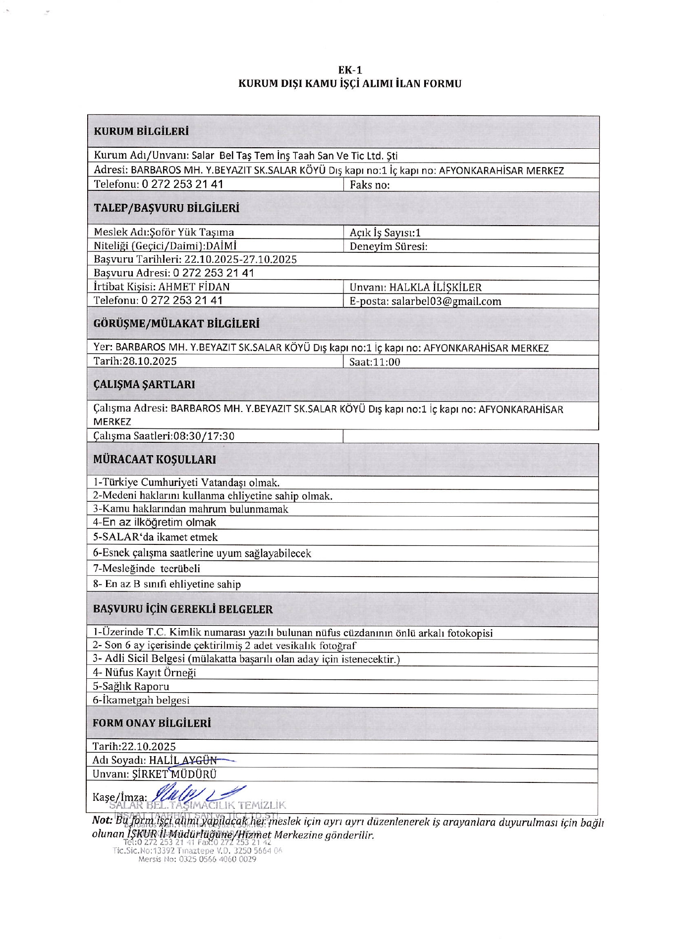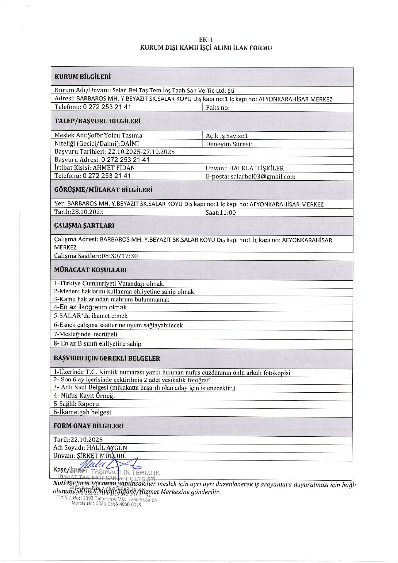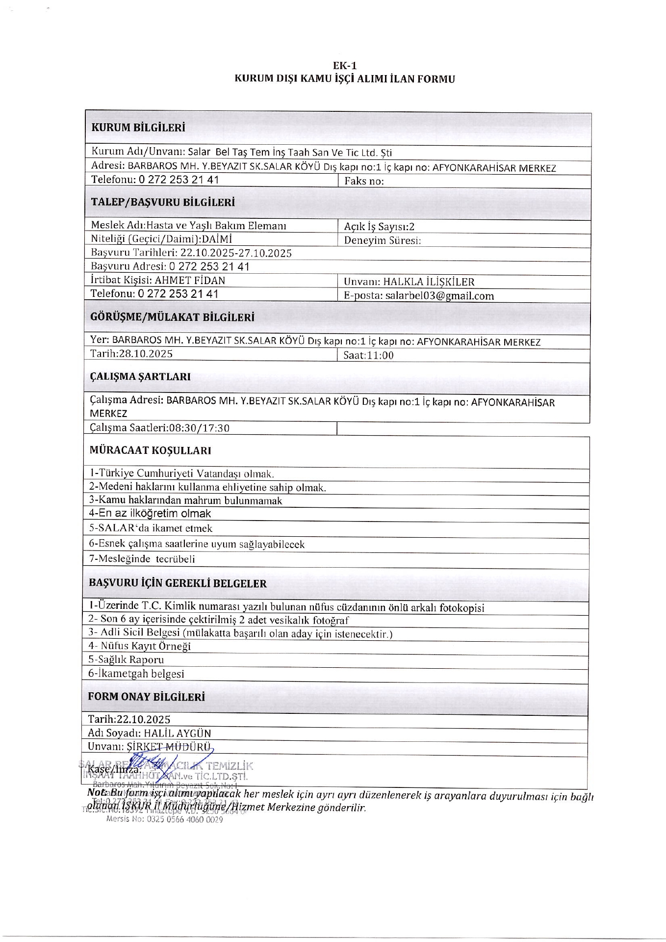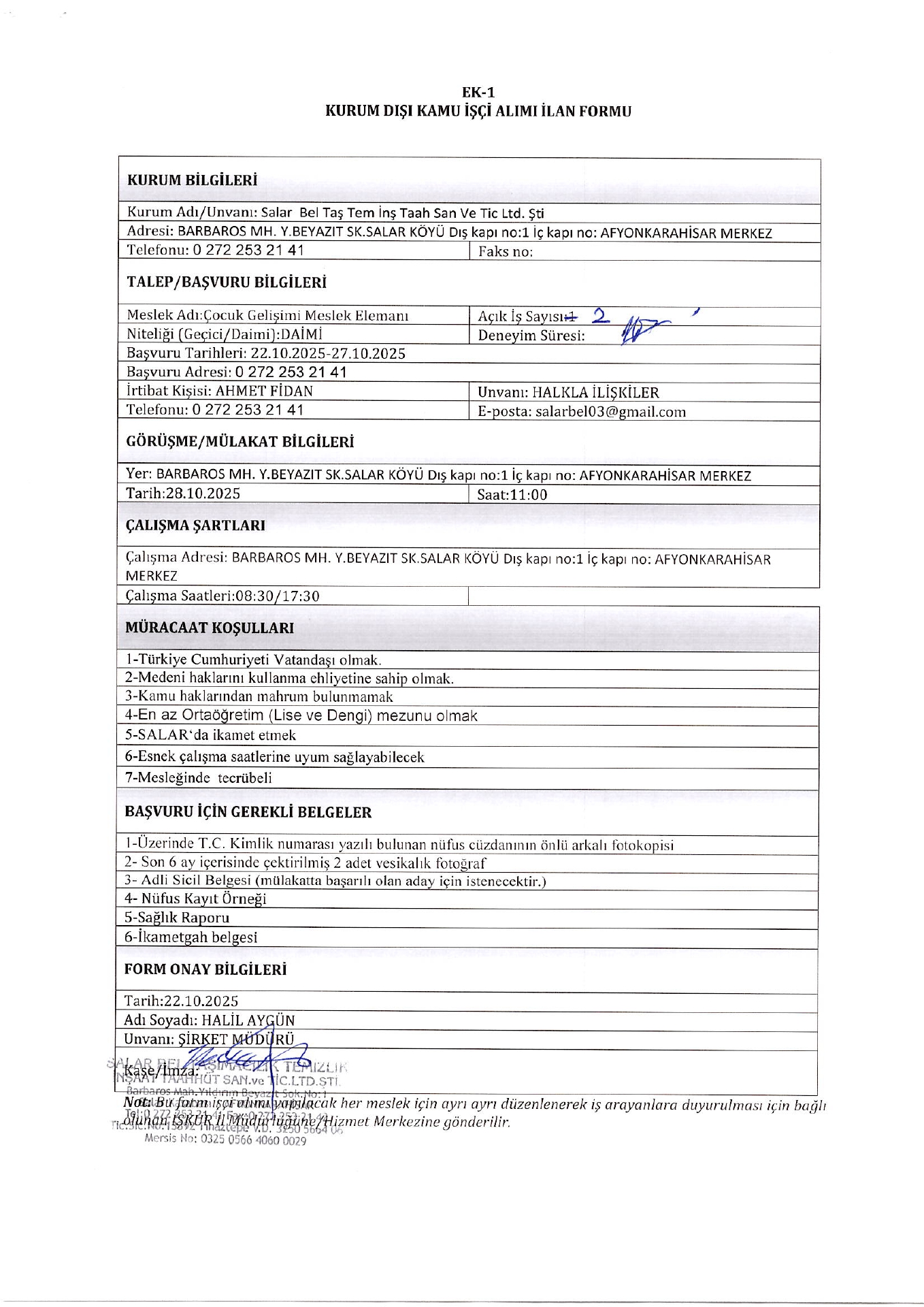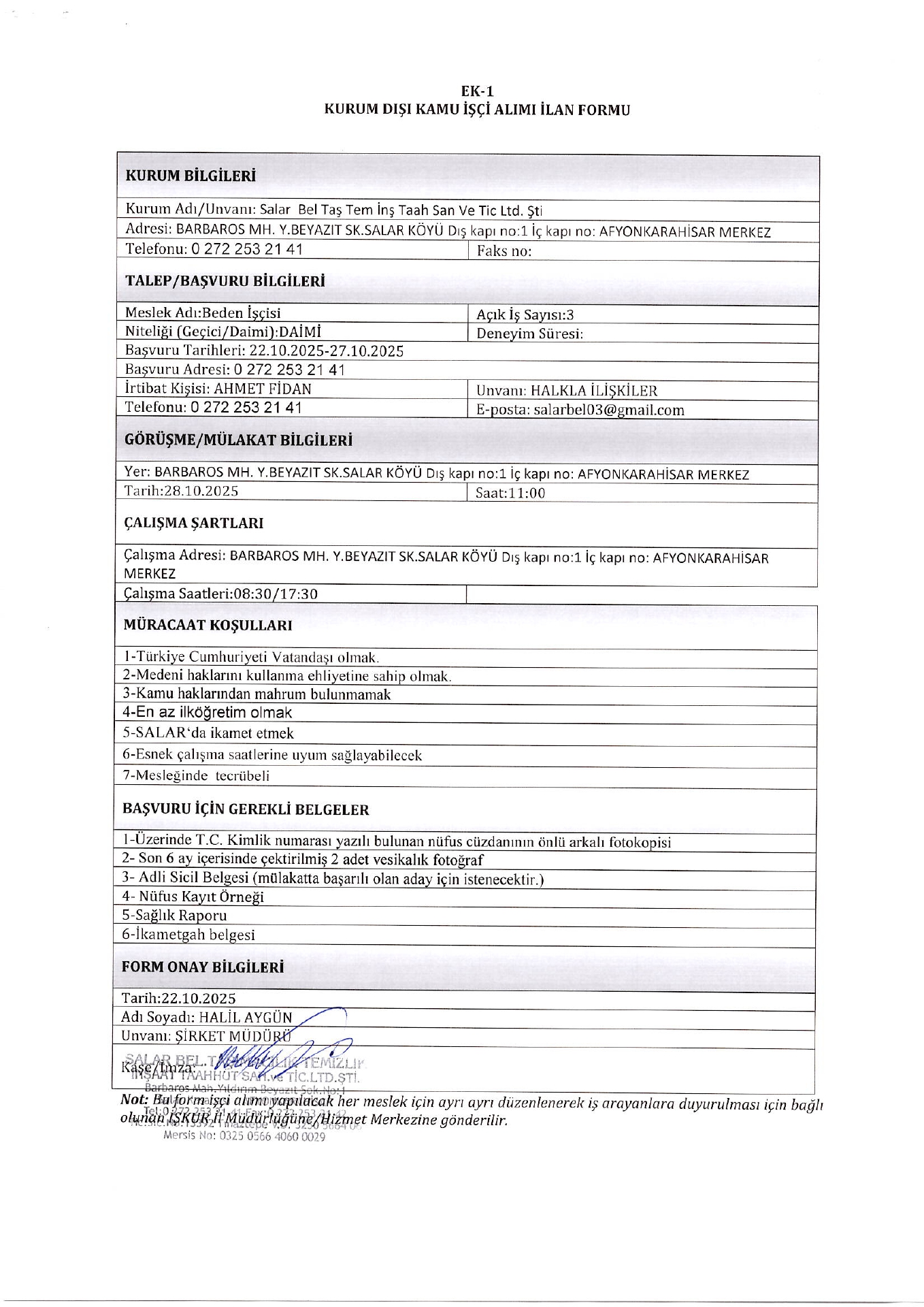 Ana sayfaDaimi İşçi İlanları Afyonkarahisar Salar Belediyesi 9 İşçi Alacak Afyonkarahisar Salar Belediyesi 9 İşçi Alacak. Son başvuru tarihi 27 Ekim 2025 Kaynak : İşkur İlan Giriş : 22 Ekim 2025 21:59, Son Güncelleme : 23 Ekim 2025 00:46 Yazdır Yorumlar (0) Abone Ol